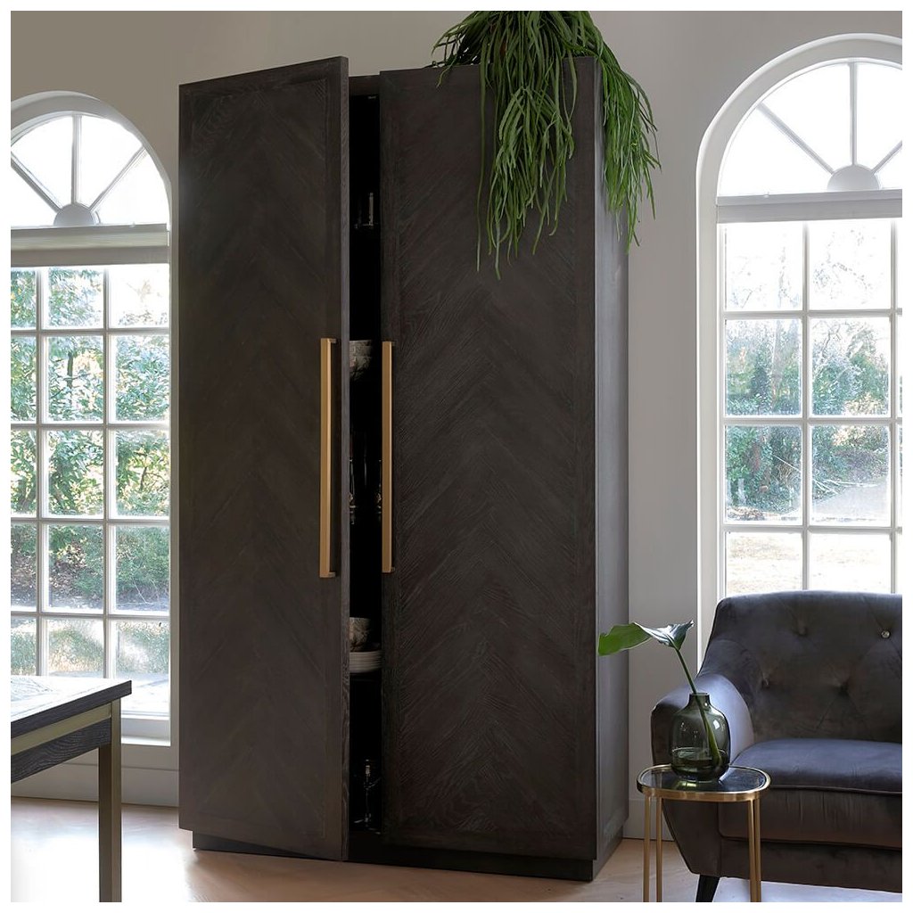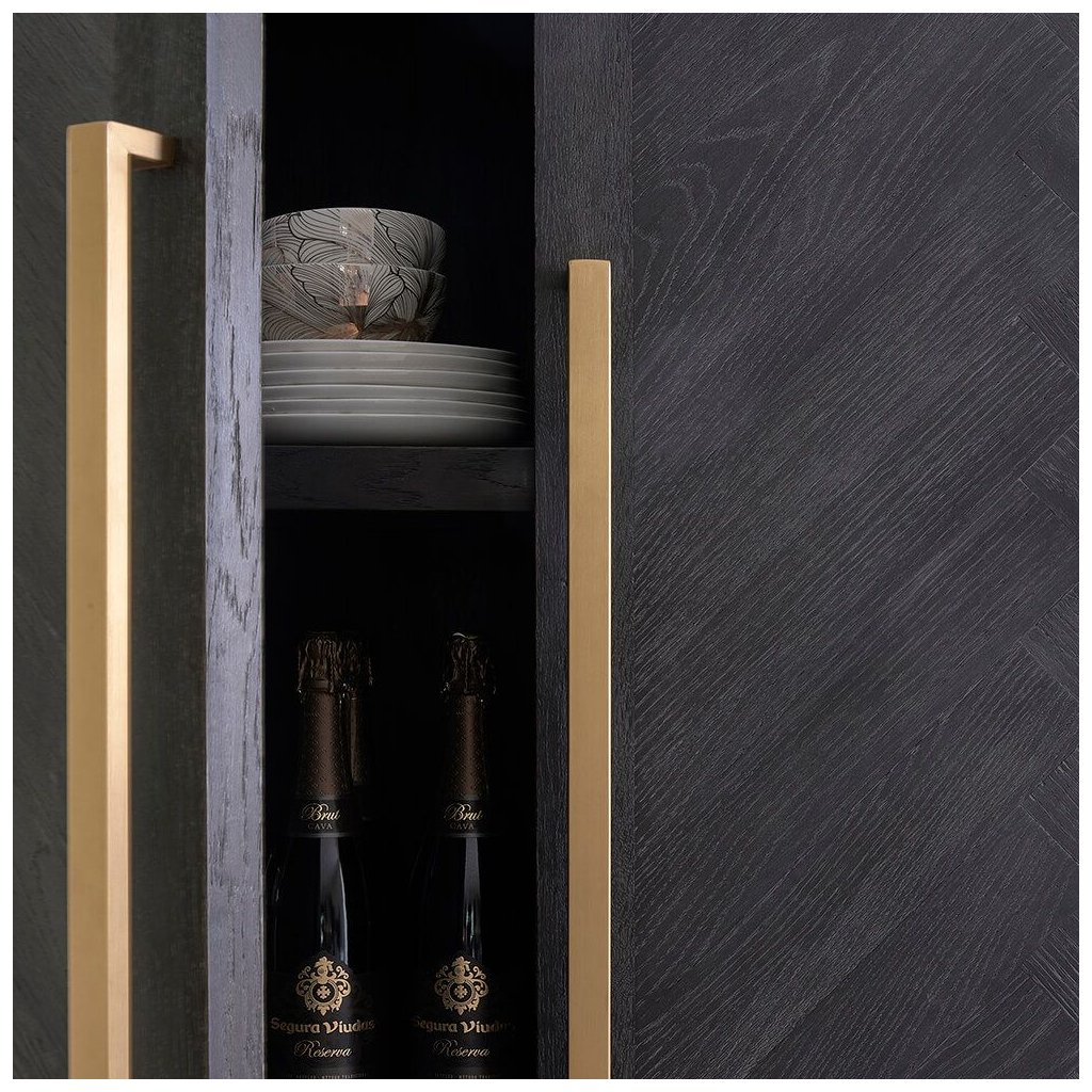 Novinkou v kolekci 5th Avenue je prostorná skříň o délce 2,23 metru. Dokonalá úložná skříň s dostatkem prostoru. Dveře jsou vybaveny mechanismem pomalého zavírání a umožňují přístup k několika policím. Skříň je vyrobena z tmavě mořeného recyklovaného dubu s pozlacenými kovovými úchytkami. Tato skříňka se dokonale hodí k řadě Costa Mesa.Tip: pro údržbu používejte sadu Premium Wood Care Kit.