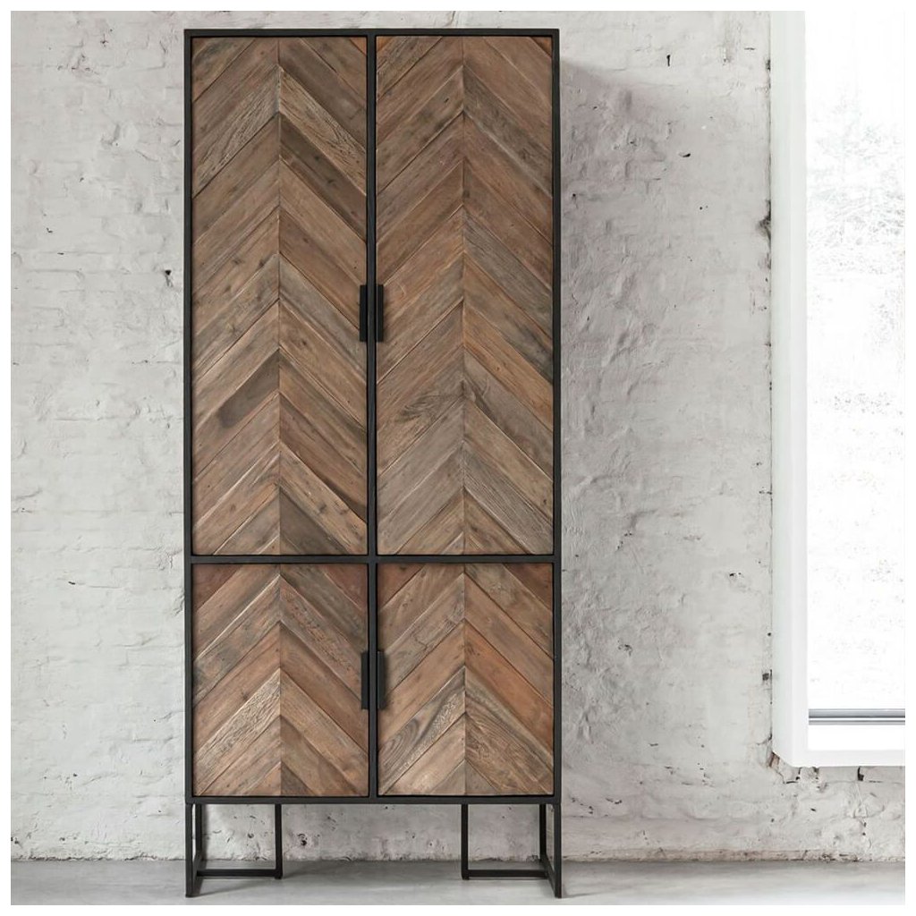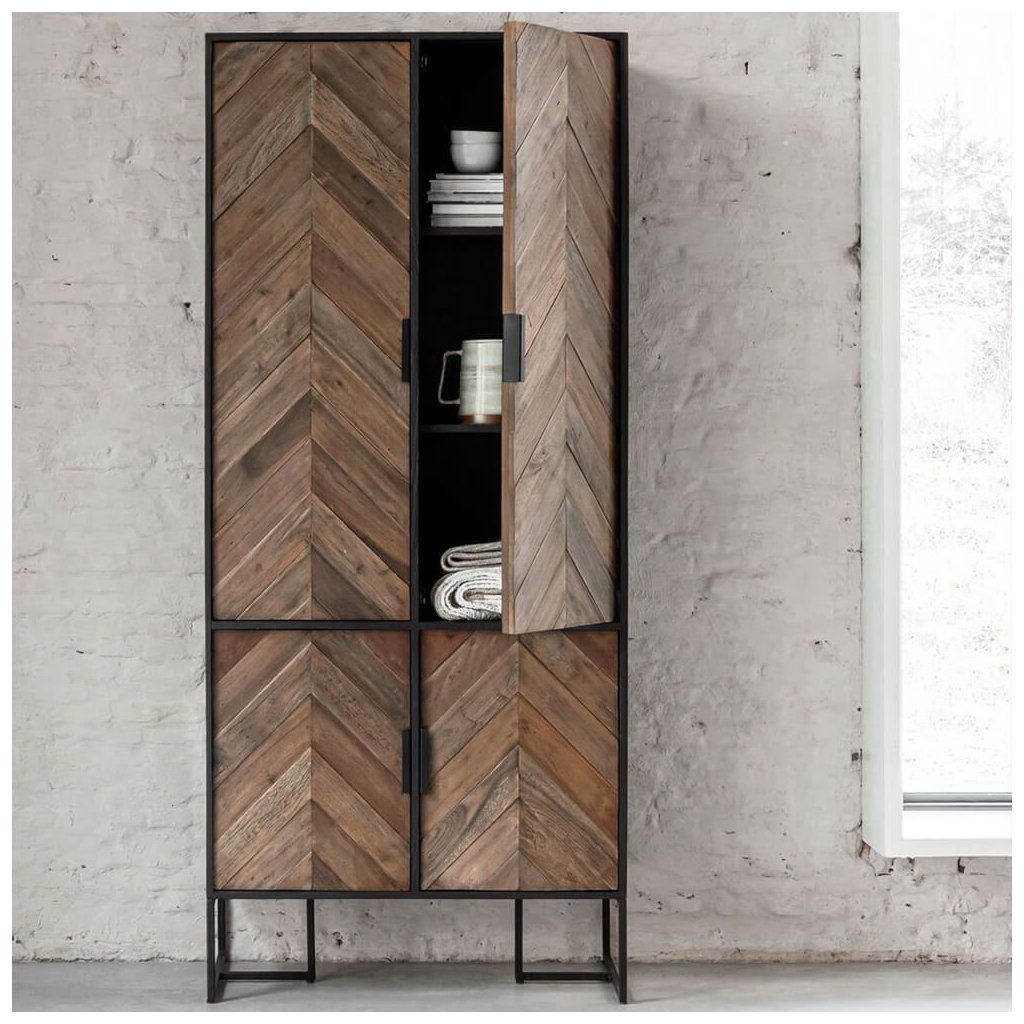 Pokud hledáte něco výjimečného, je pro vás ideální naše kolekce Criss Cross. Tato knihovna je vyrobena z kombinace smíšeného dřeva a oceli a má vzor rybí kosti. Knihovna Criss Cross má 4 dřevěná dvířka a rozměry 185x80x40 cm.Nová řada výrazného nábytku s chevronovým vzorem z recyklovaného teakového dřeva. Kombinace šikmých pruhů a rovných linií je italskou podlahovou klasikou. Používá se na deskách stolů a dvířkách skříní, je hravý, atraktivní a elegantní. Jedná se o kolekci Criss Cross.