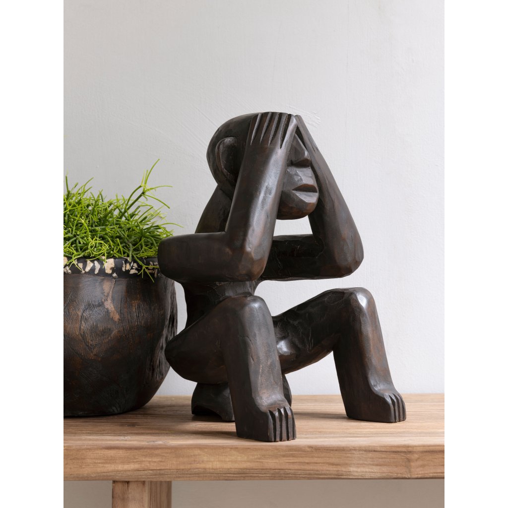 Roztomilá socha Monkey See Nothing z kvalitního mahagonového dřeva vnese do vašeho interiéru hravost a exotický dotek. Ručně vyřezávaná postavička se známým gestem „nevidím“ působí jako originální dekorace i jako symbol moudrosti a nadhledu. Skvěle se hodí na poličku, komodu či pracovní stůl, kde prostor rozveselí a dodá mu jedinečný charakter. 🐒✨