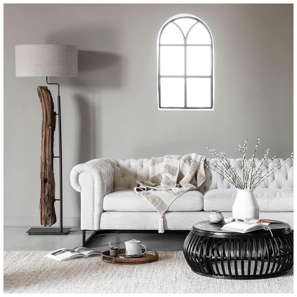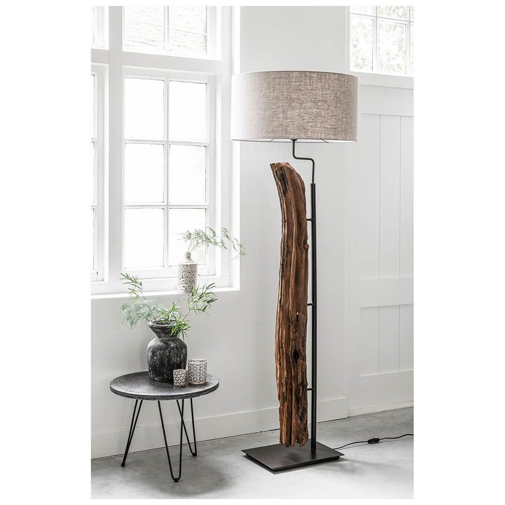 Stojací lampa Contemporary je kombinací podstavce a stínidla z přírodního teakového dřeva. Podstavec lampy je u každé lampy jedinečný díky originálnímu kusu teakového dřeva.