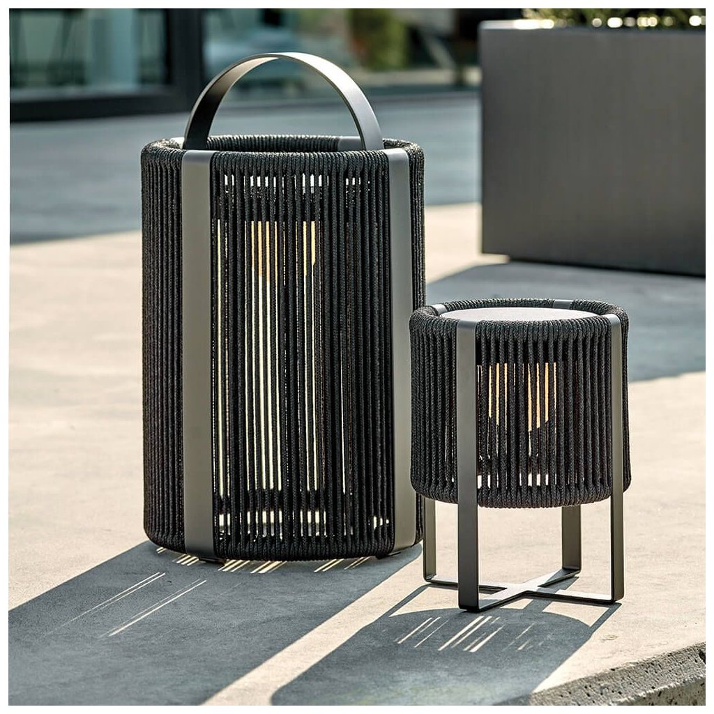 Stojací lampa z polyolefinového výpletu a práškově lakovaného hliníkového rámu dodá vaší terase nebo balkonu měkké a intimní světlo.Pokud máte zájem, kontaktujte nás.