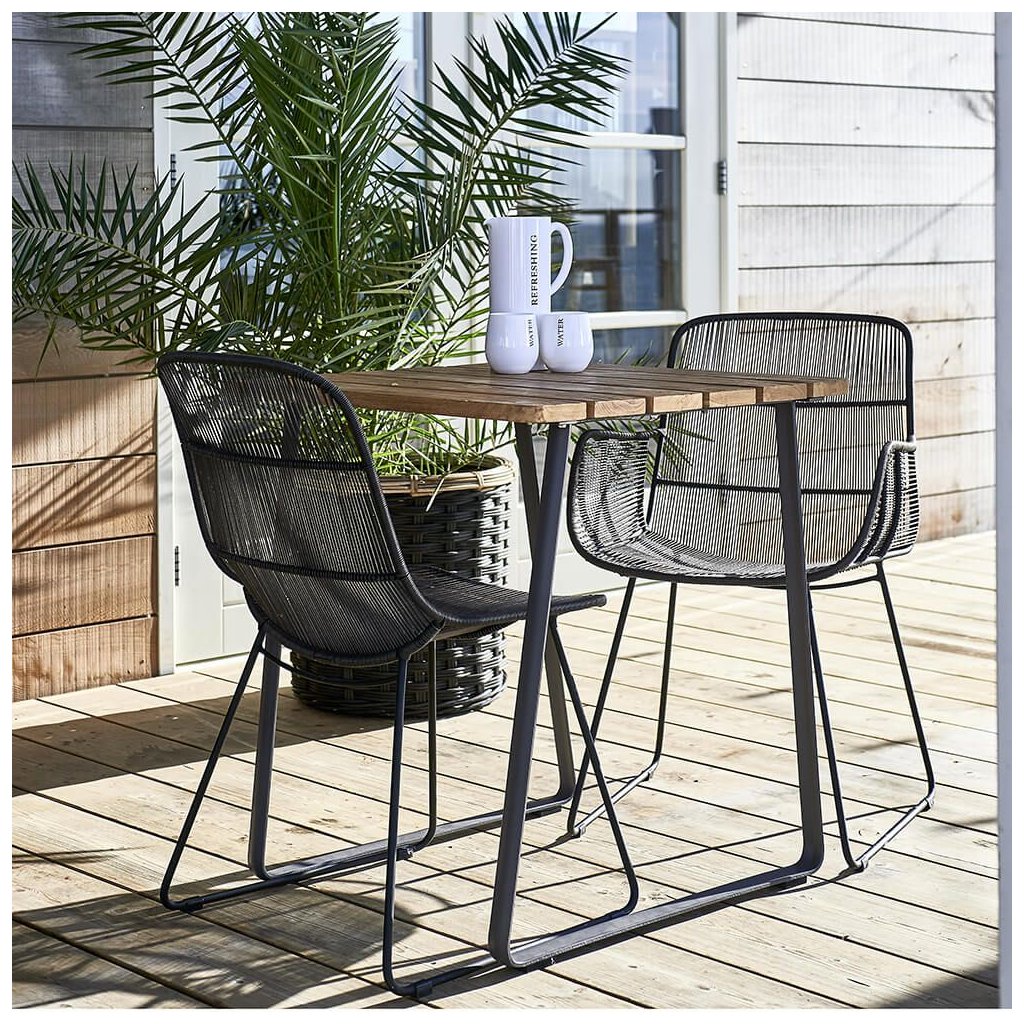 Jedná se o zábavný bistro stolek o rozměrech 70 x 70 cm. Stůl má teplý odstín dřeva s pevným tmavým kovovým rámem. Subtilní kovové nohy, skvělý způsob, jak ozdobit zahradu květináči a doplňky nebo jako jídelní stůl na malou terasu či balkon.Doplňkové parametry