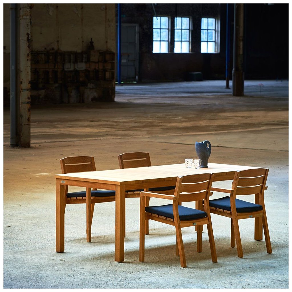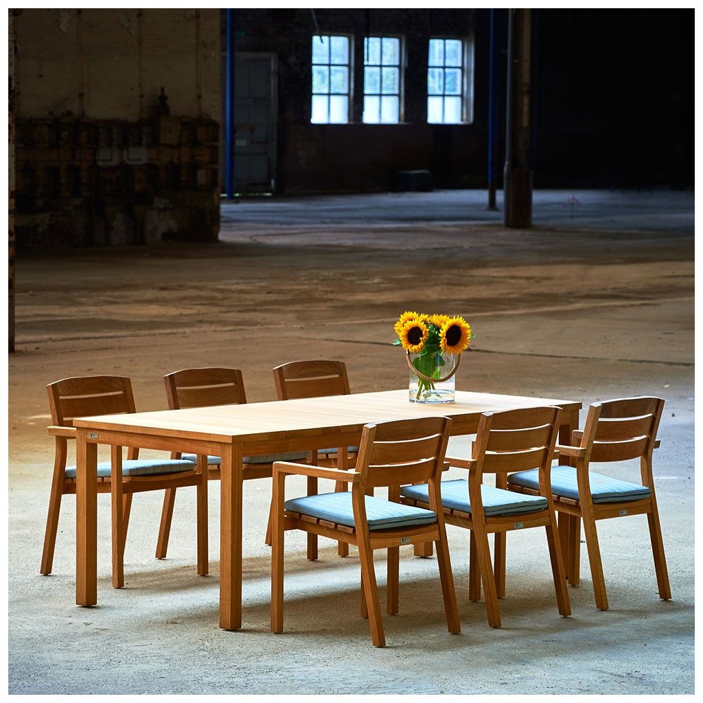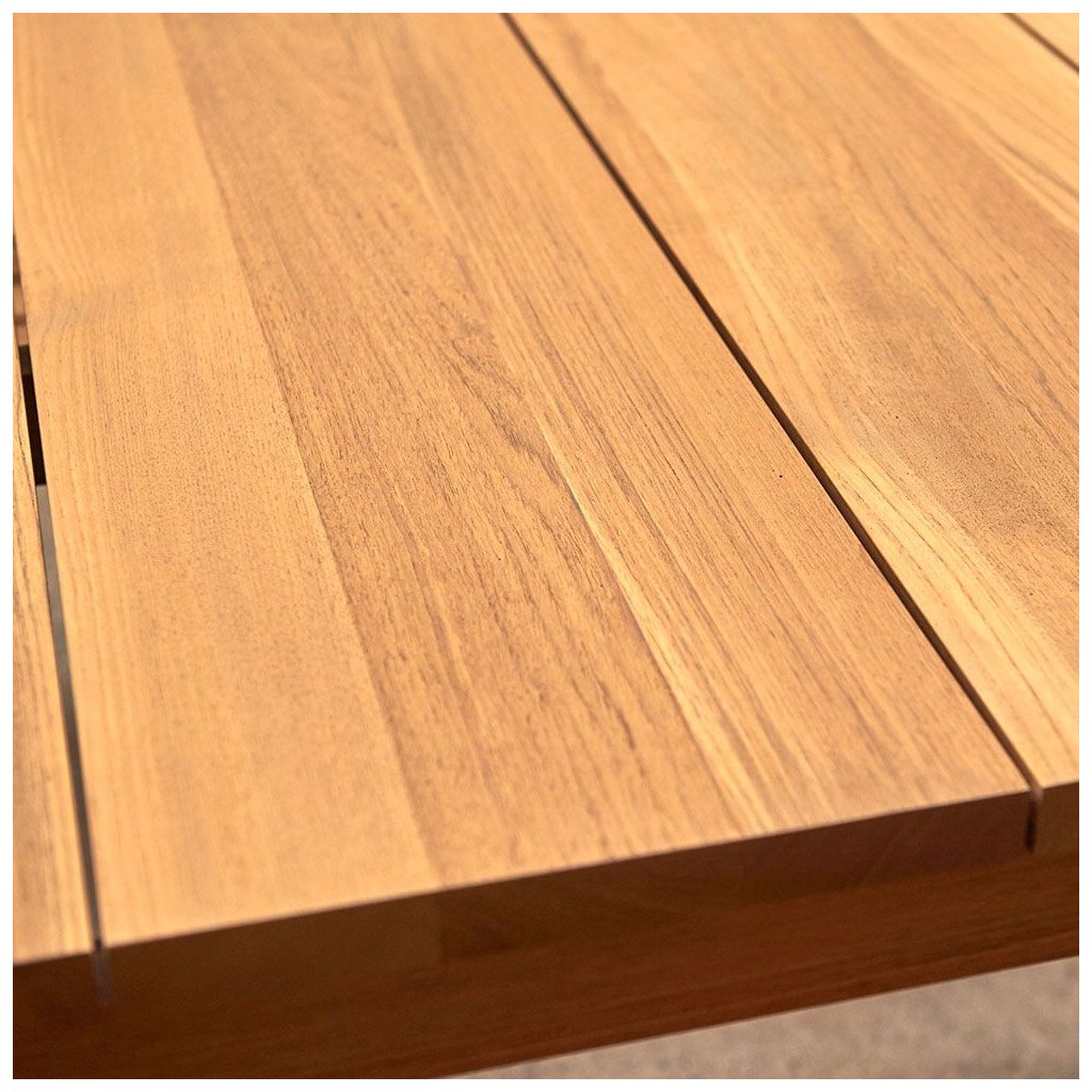 Klasický design s moderním nádechem, to jsou stoly Floris. Čtyři štíhlé nohy na úzkém rámu s deskami z teakového dřeva vytvářejí krásnou kombinaci. Stůl se dodává v několika velikostech a je kombinovatelný se všemi našimi teakovými židlemi.
