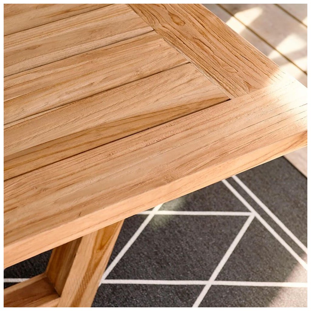 Užijte si léto s venkovním jídelním stolem Tanjung.Tento stůl, který je neuvěřitelně dlouhý 4 metry, je skutečně velmi prostorný. Celý stůl je vyroben z masivního teakového dřeva, které je proslulé svou odolností. Pravidelně dřevo ošetřujte našimi přípravky, aby si zachovalo svůj medový odstín, nebo se o nic nestarejte a nechte přírodu, ať udělá svou práci. Dřevo pak časem získá krásný zvětralý, šedý odstín.