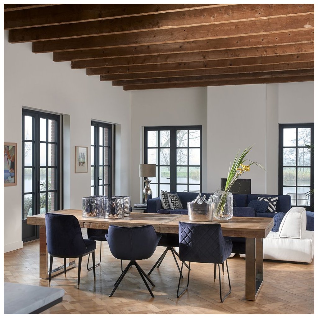 Sedák jídelní židle Carnaby je prošívaný, což látku nafoukne a umožní vám pohodlně relaxovat po dlouhém dni. Noha je vyrobena z černého železa.