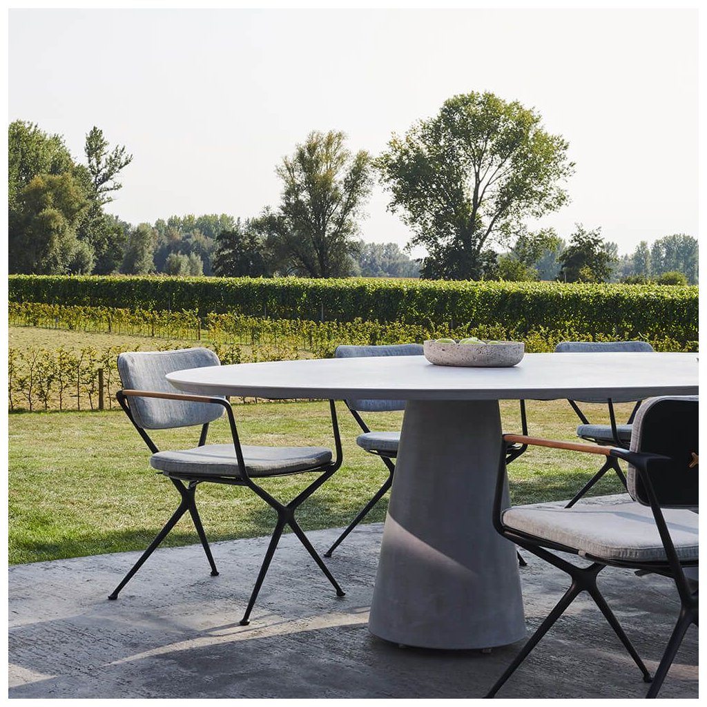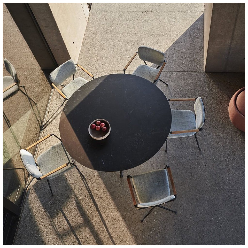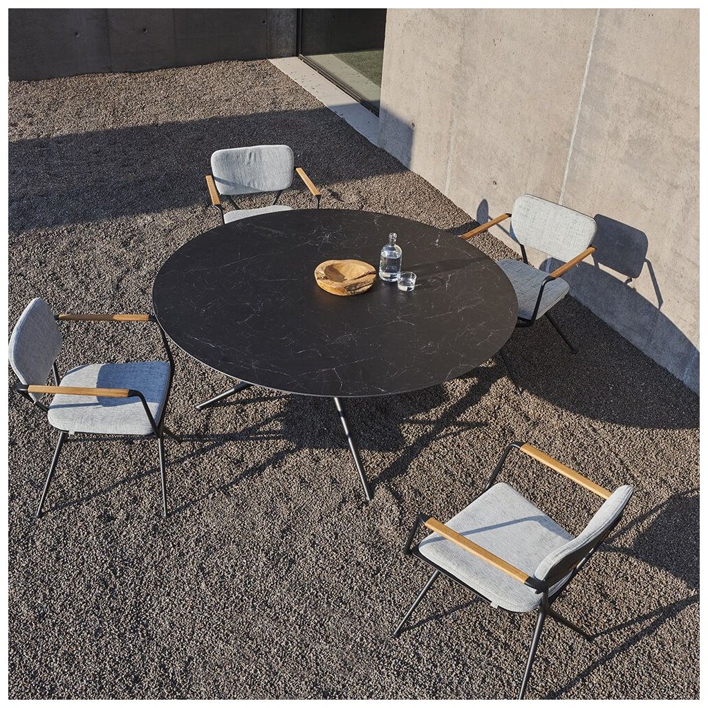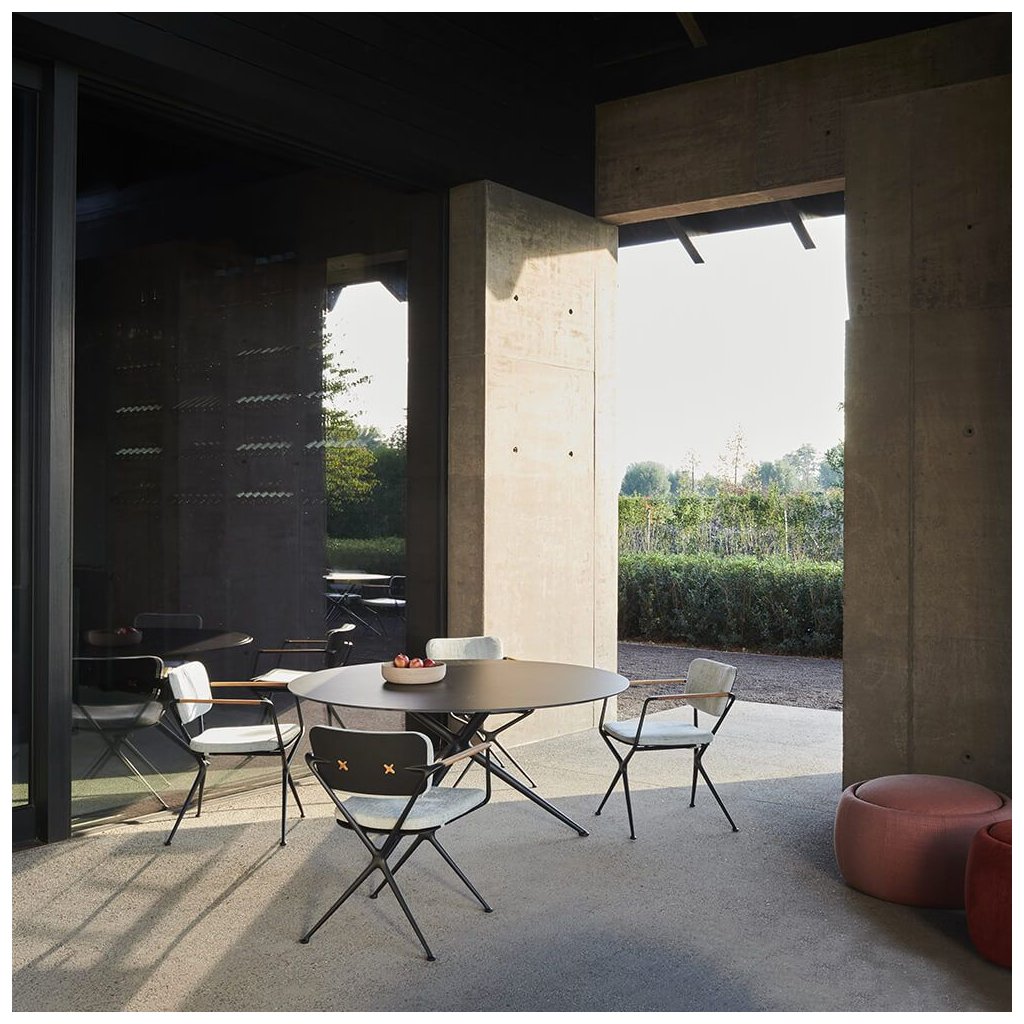 Jaký lepší název vymyslet pro židli ze dvou rámů ve tvaru písmene X, která nabízí více pohodlí a stylu než ... Ex!Hladké organické linie rámu z litého hliníku přerušují pouze zkosené područky z teakového dřeva, které jsou hřejivým designovým prvkem. Bezproblémová integrovaná zakřivená deska opěradla má dva otvory ve tvaru písmene X. Slouží nejen jako estetický prvek, ale také jako upevňovací body pro polštář opěradla. Připevňují se pomocí knoflíků ve tvaru X, které mají standardní barvu rámu. Jako volitelné příslušenství jsou nabízeny také tykové, které lze sladit s područkami. Ty činí židli Exes ještě atraktivnější.
