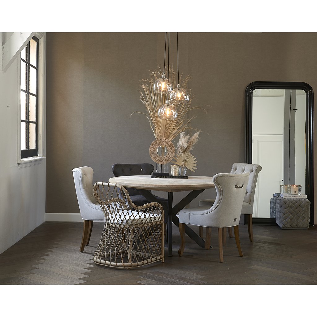 Pohodlná jídelní židle s klasickou elegancí a praktickým věšákem na opěradle. K dispozici v různých barvách a materiálech.