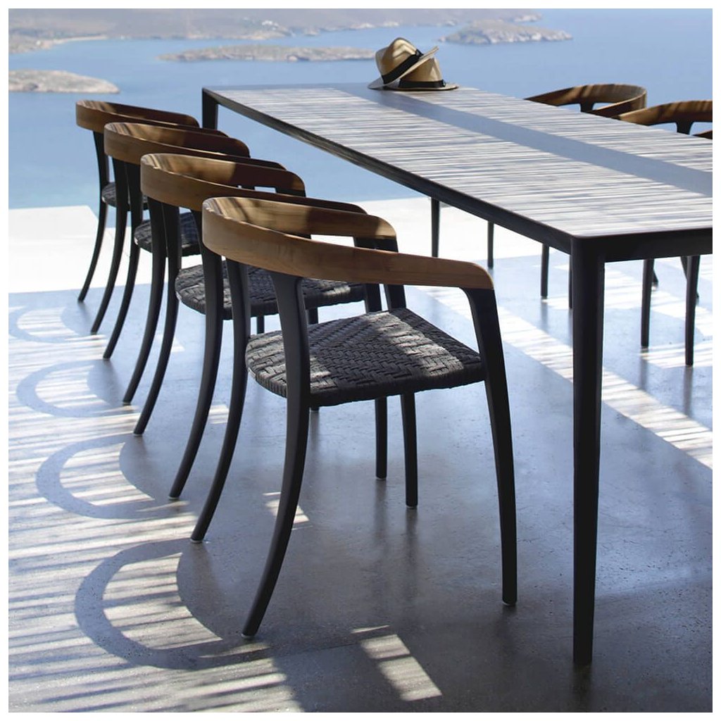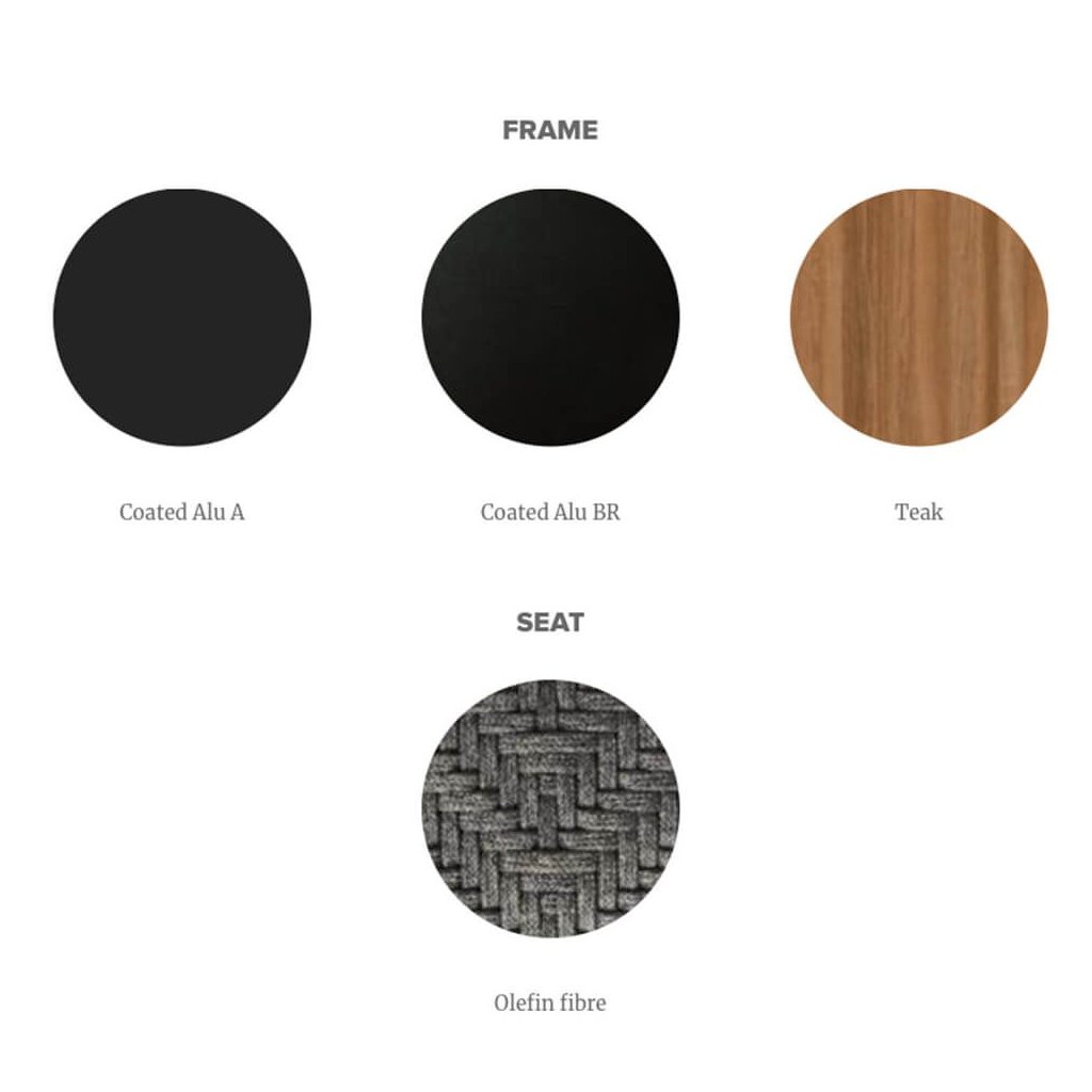 Různé kombinace hliníku, vazby a teakového dřeva.