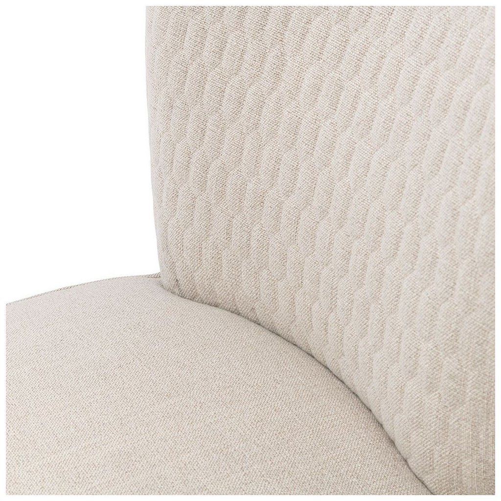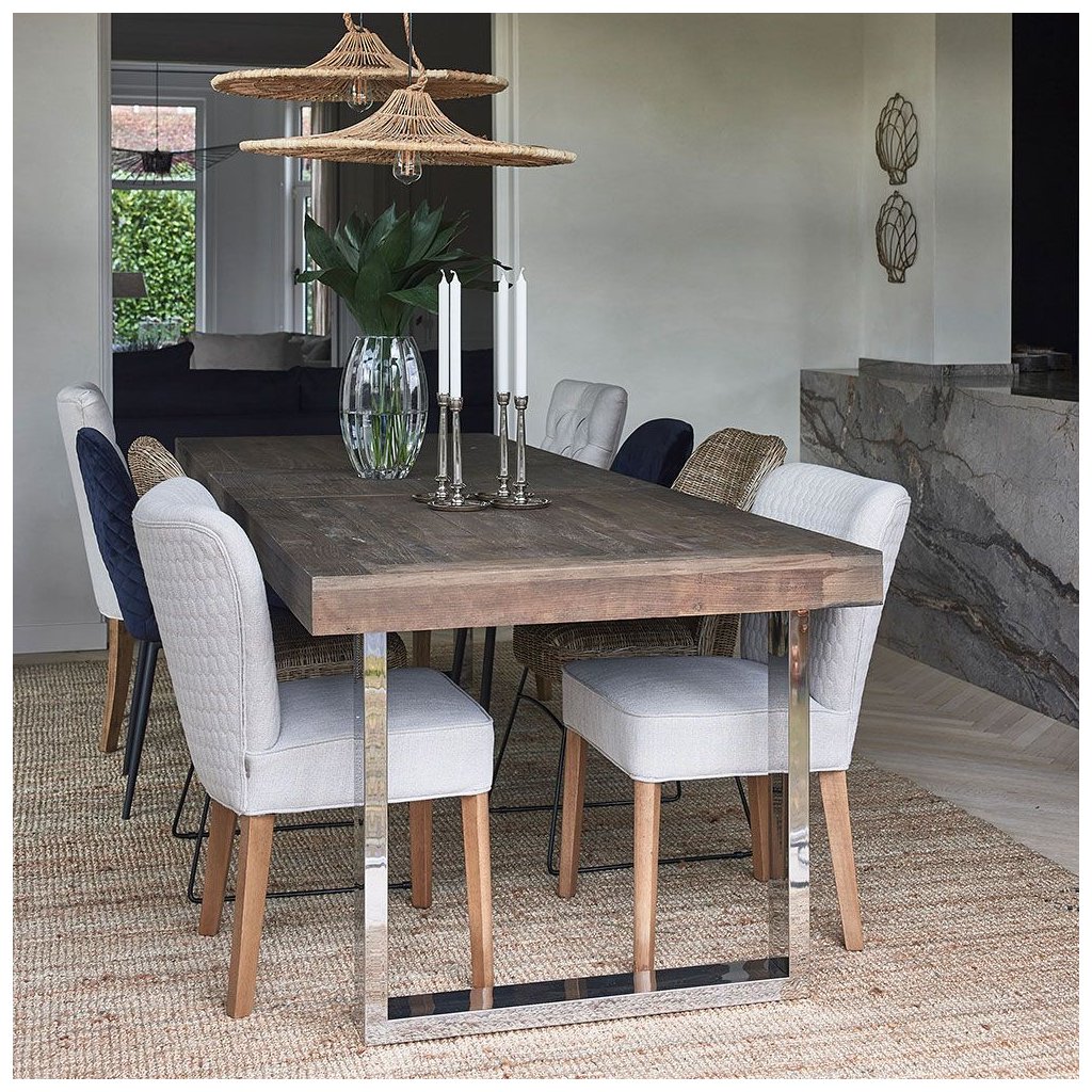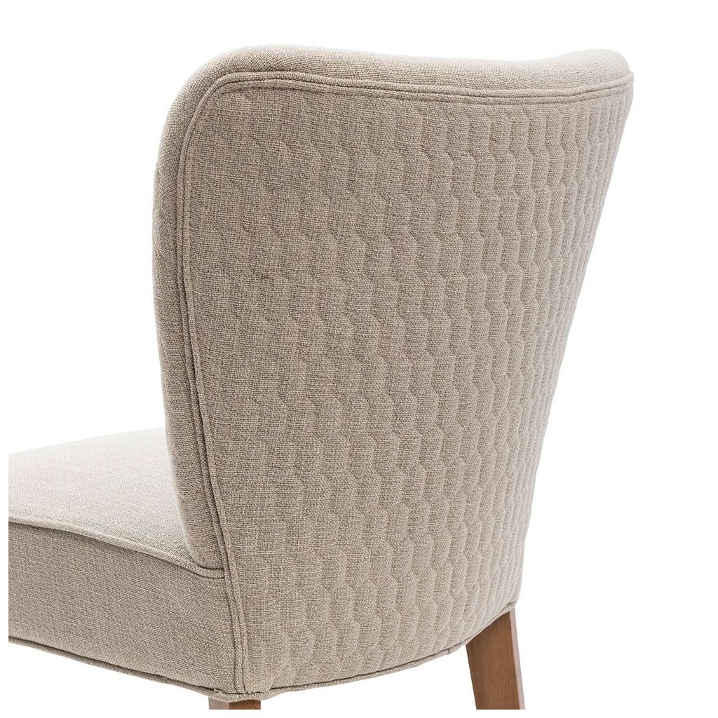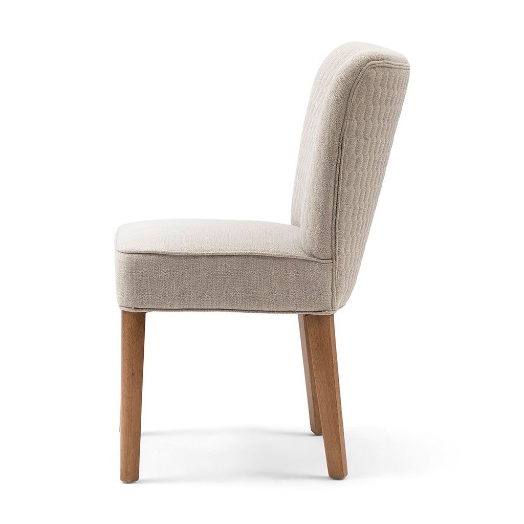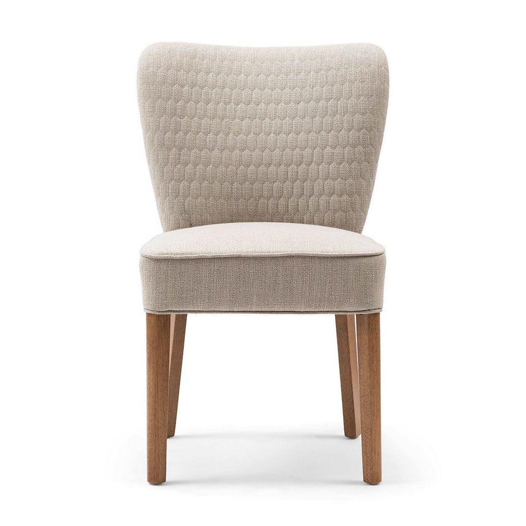 Opěradlo jídelní židle Louise má na přední a zadní straně šestiúhelníkový vzor. Sedák je plochý a pohodlný. Jídelní židle je k dispozici v potahové látce "Fabulous Flax" z kolekce Mouliné Linen v New Jersey. Tato látka je vyrobena ze lnu a viskózy. Nohy v barvě taupe jsou vyrobeny z kaučukového dřeva.