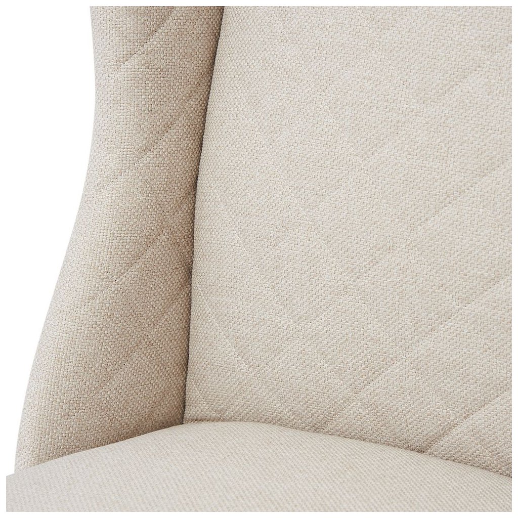 Jídelní židle Wiliam v barvě flanderského lnu je klasická jídelní židle. Židle má čistý, ale měkký sedák, dekorativní prošívaný opěrák s ušima, ale bez područek. Jídelní židle má nohy z hnědého kaučukového dřeva. Židle je široká 57 cm, hluboká 68 cm a vysoká 106 cm. Ukončená kolekce, poslední kusy skladem.
