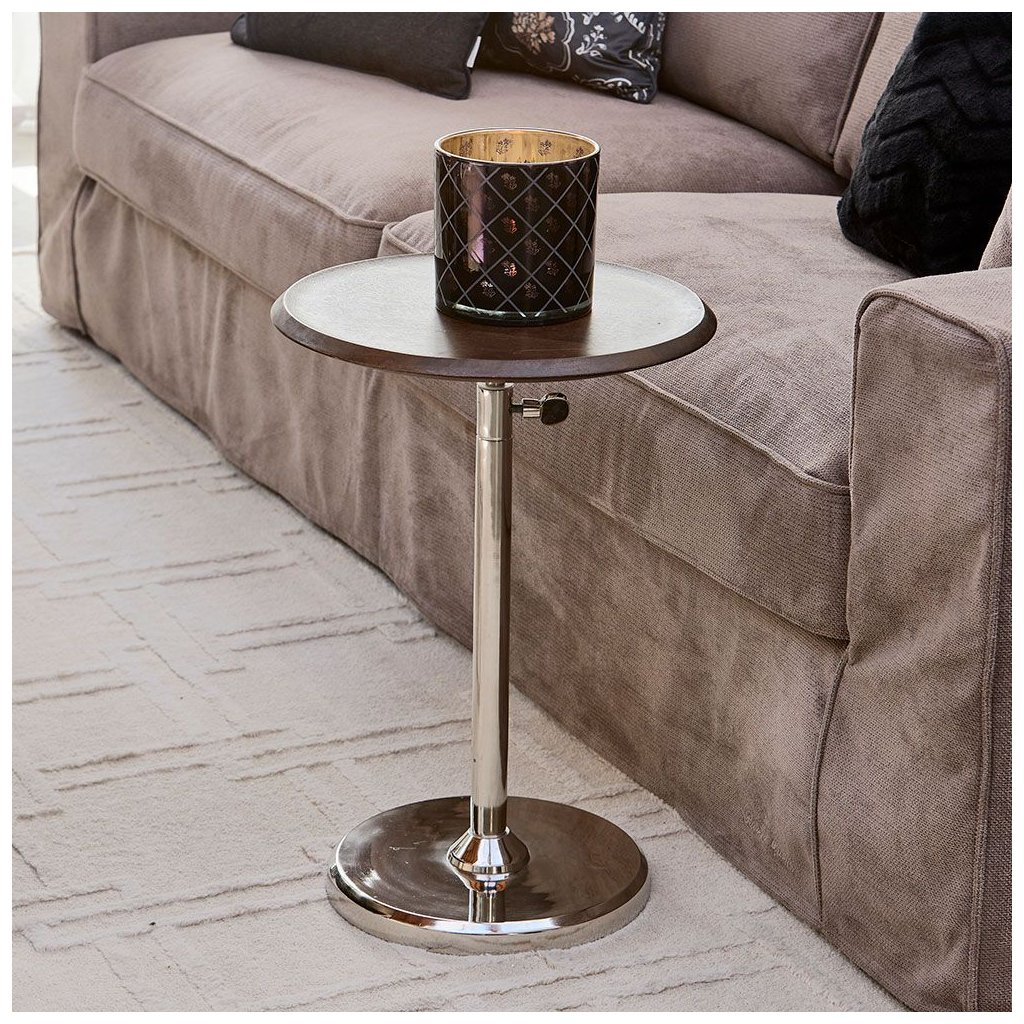 Konferenční stolek Capri stojí na jediné kulaté podnoži z lesklého hliníku, na níž je umístěna deska z půvabného mangového dřeva. Výsledkem je malý odkládací stolek, který je díky svým rozměrům všude doma.Boční stolek je navíc výškově nastavitelný, takže jej můžete dokonale přizpůsobit svým potřebám.