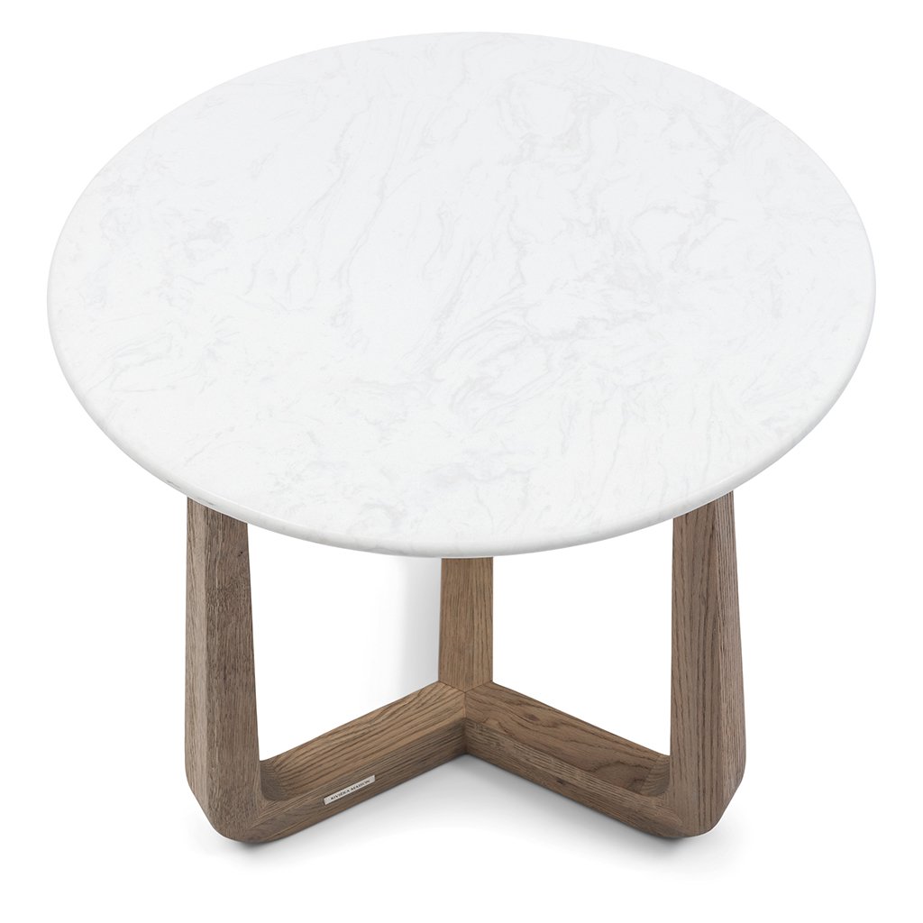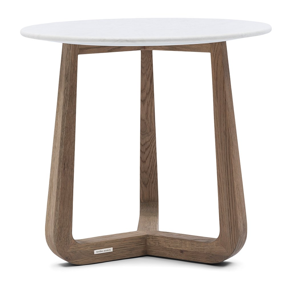 Tento boční stolek je jedinečným kouskem do každého interiéru. Kulatá mramorová deska působí luxusním dojmem a tři dubové nohy vytvářejí moderní design. Jemné logo Riviera Maison na noze podtrhuje sofistikovanost tohoto kusu. Přírodní kámen dělá z každého stolku jedinečný kousek, který je ideální pro dodání stylového a moderního nádechu vašemu interiéru.Doplňkové parametry
