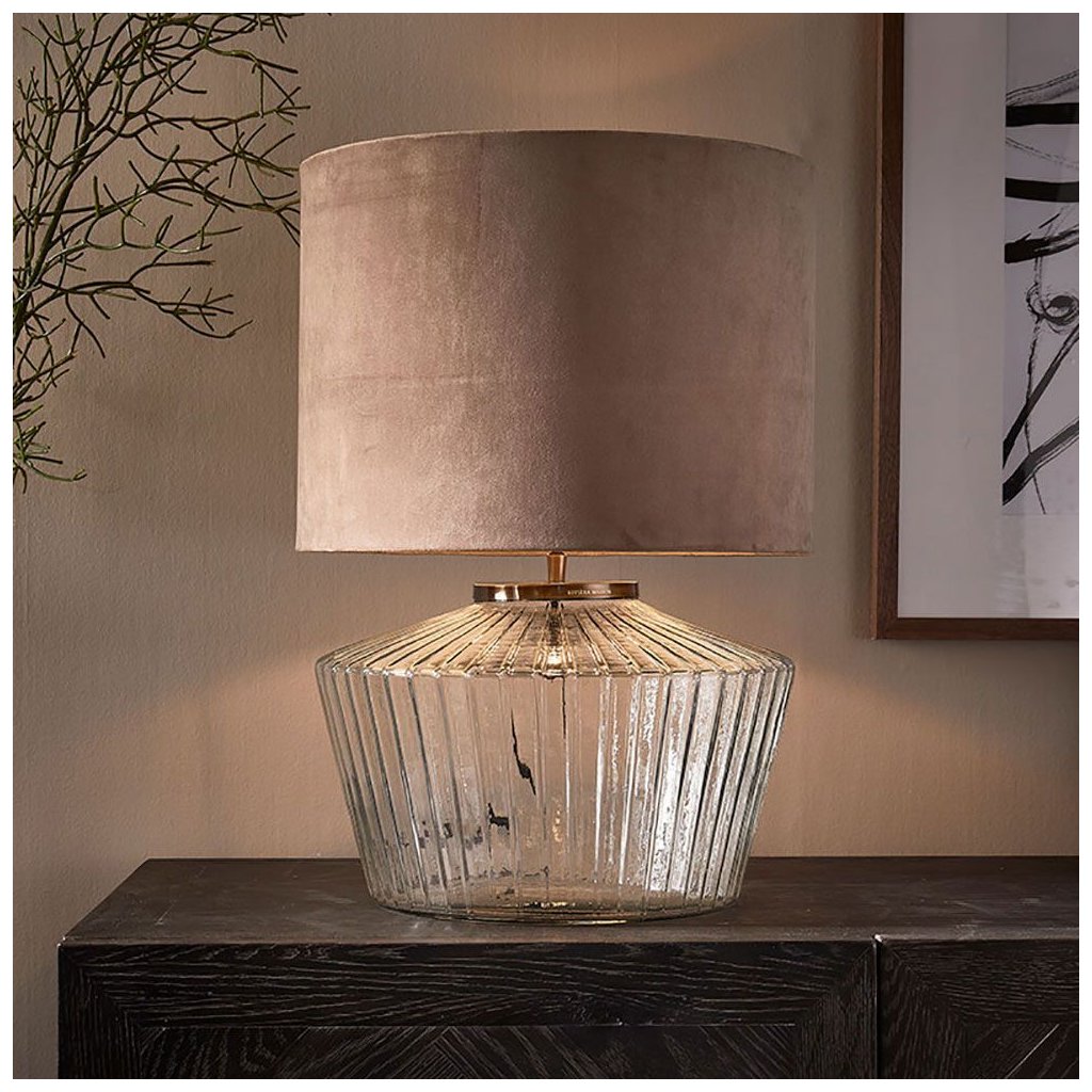 Náš skleněný podstavec lampy Nolan je klasický a elegantní se zlatými detaily. Podstavec stolní lampy je vyroben z žebrovaného skla v poutavém tvaru. Na horní straně je černá objímka lampy, která je nastavitelná, takže stínidlo můžete vždy vyrovnat.Doplňkové parametry
