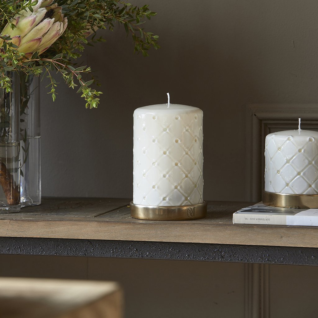 Svíčka Pillar Padded stub od společnosti Riviera Maison je romantickým doplňkem každého svícnu nebo lucerny. Efekt polstrování v šeptané bílé barvě vytváří atmosféru. Tato moderní svíčka je vyrobena z parafínu a měří 9,5 x 15 cm.Doplňkové parametry