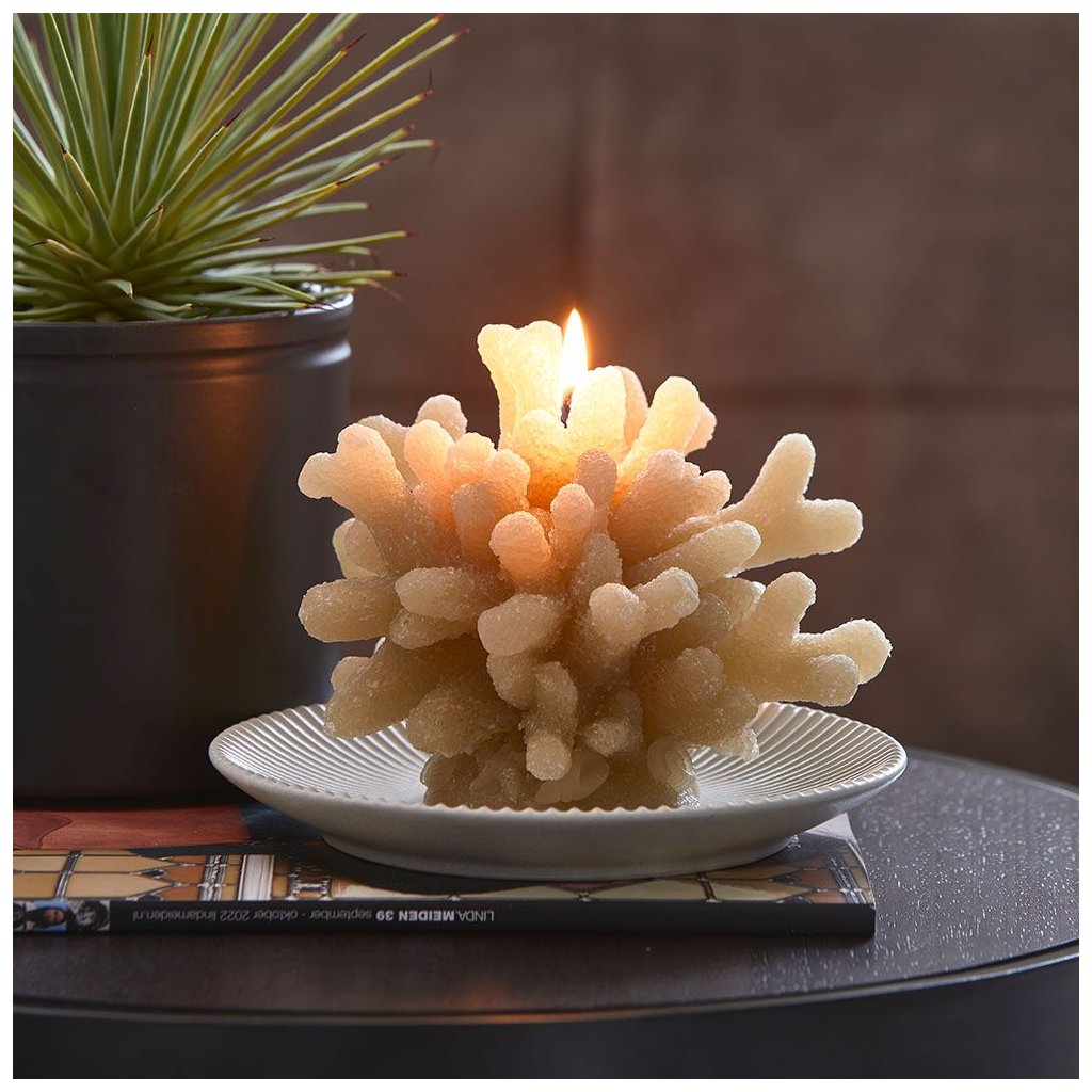 Svíčka RM Coral Candle ve tvaru parafínového korálu je opravdu příliš krásná na to, aby se dala zapálit. Ale samozřejmě se na ni můžete nejprve chvíli dívat a pak ve zvláštní chvíli přidat plamínek. Takto si ji můžete vychutnat hned dvakrát a tato svíčka za to stojí.