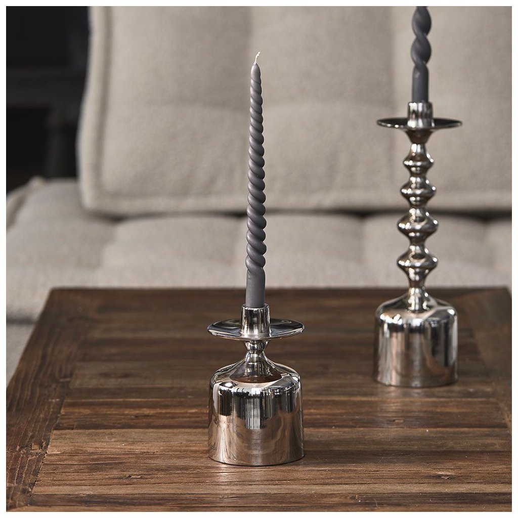 Atmosférický a vkusný svícen RM Quinevere. Tento stojan je určen pro večerní svíčku a je vyroben z lesklého hliníku. Design je organický a připomíná diabolo. V horní části má okraj, ze kterého může vytékat vosk.