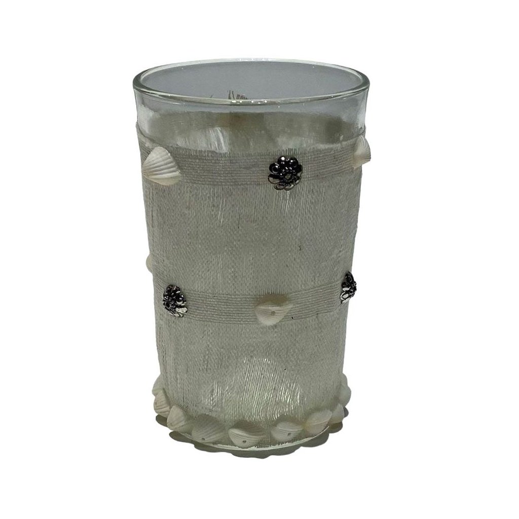 Svícen na čajové svíčky, zdobený mušlemi a květinamiDoplňkové parametry