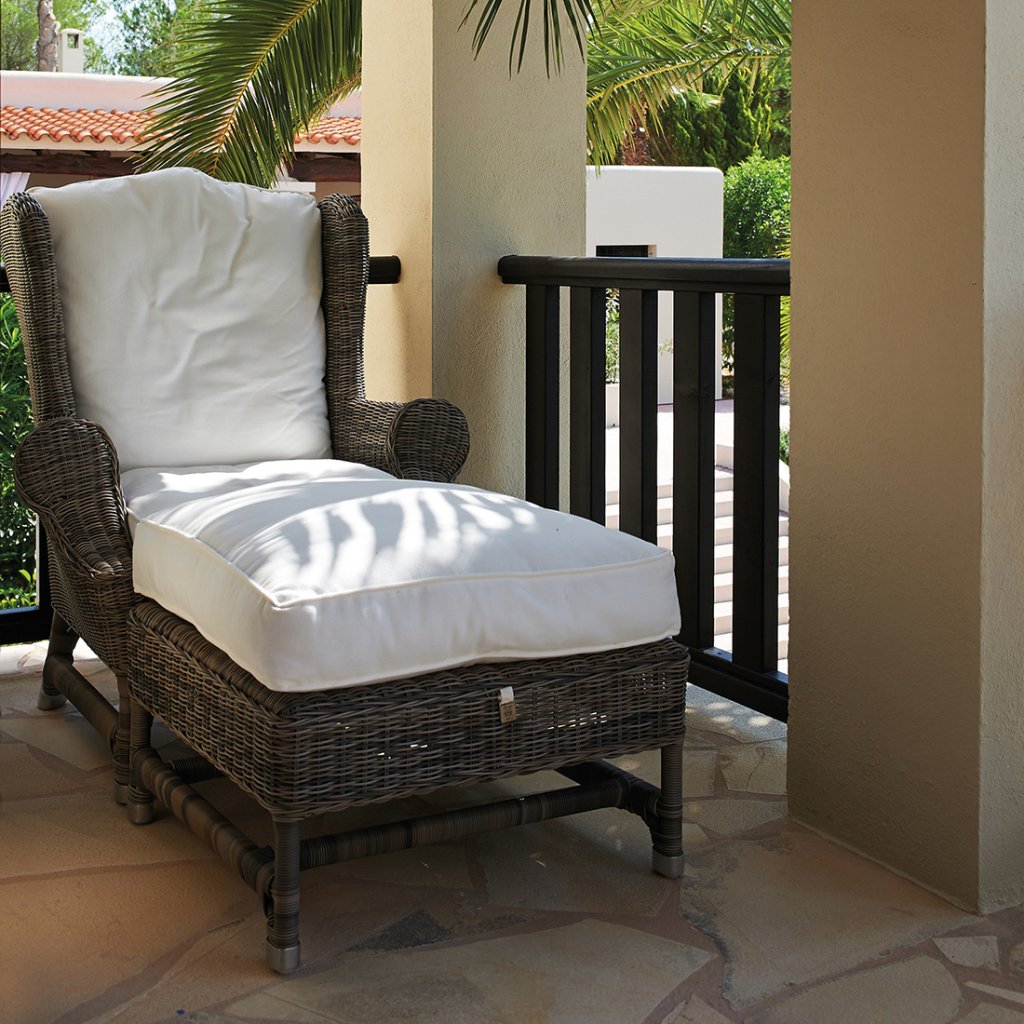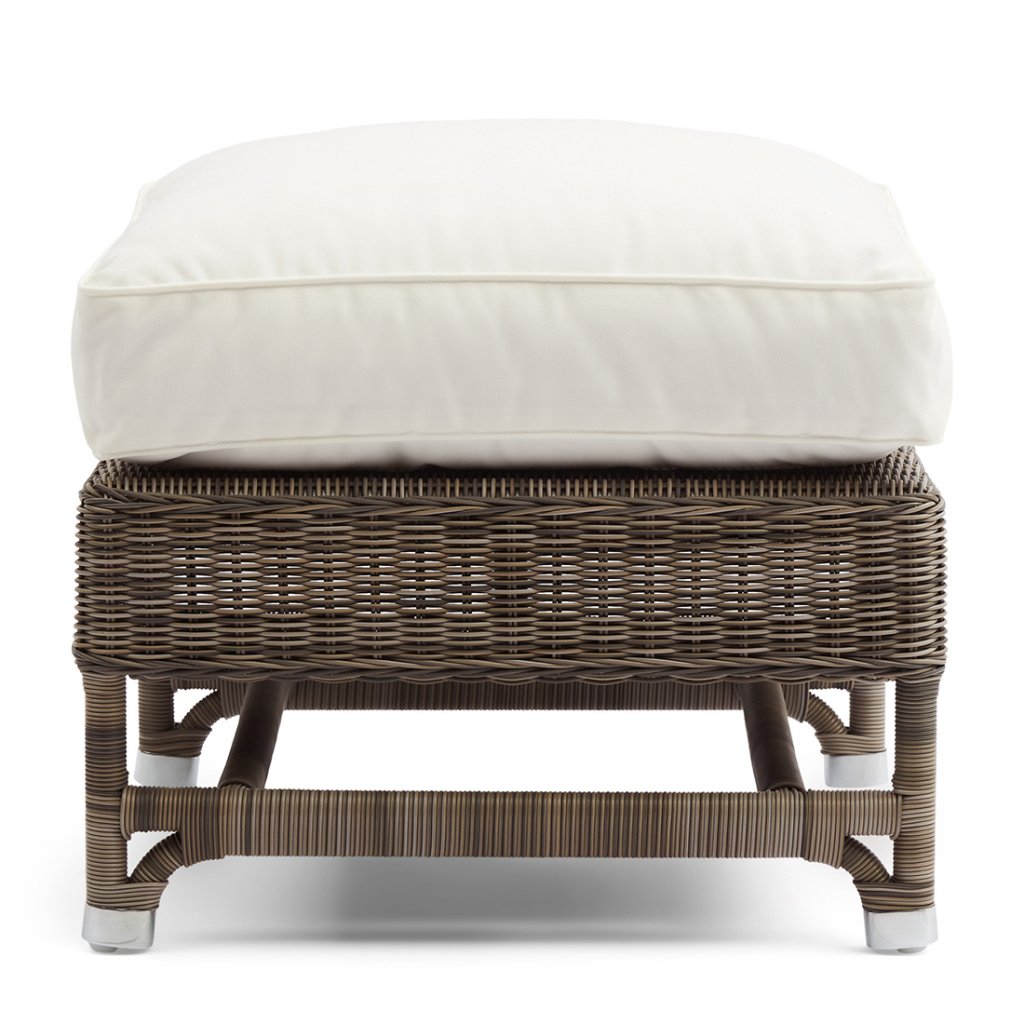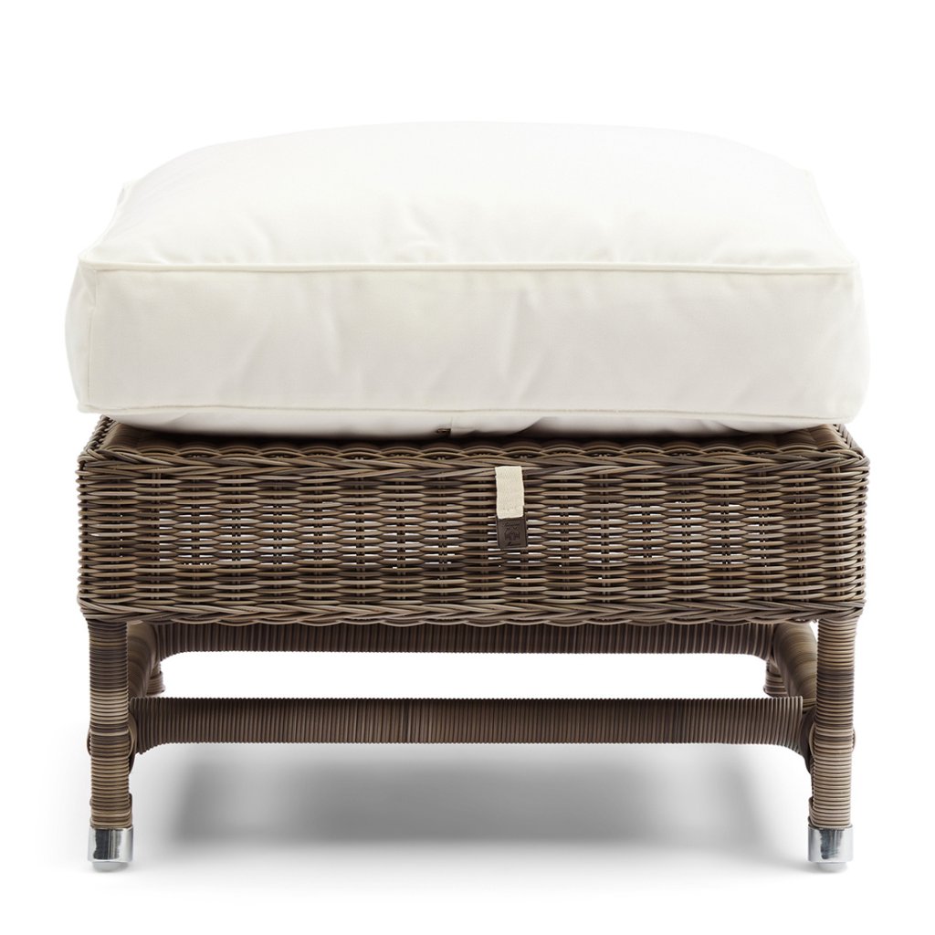 Venkovní podnožka z umělých vláken a hliníkového rámu pro křeslo Nicholas Wing Chair, vhodná pro venkovní použití. Lze ji samozřejmě zakoupit i samostatně.