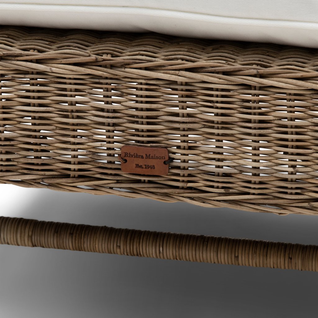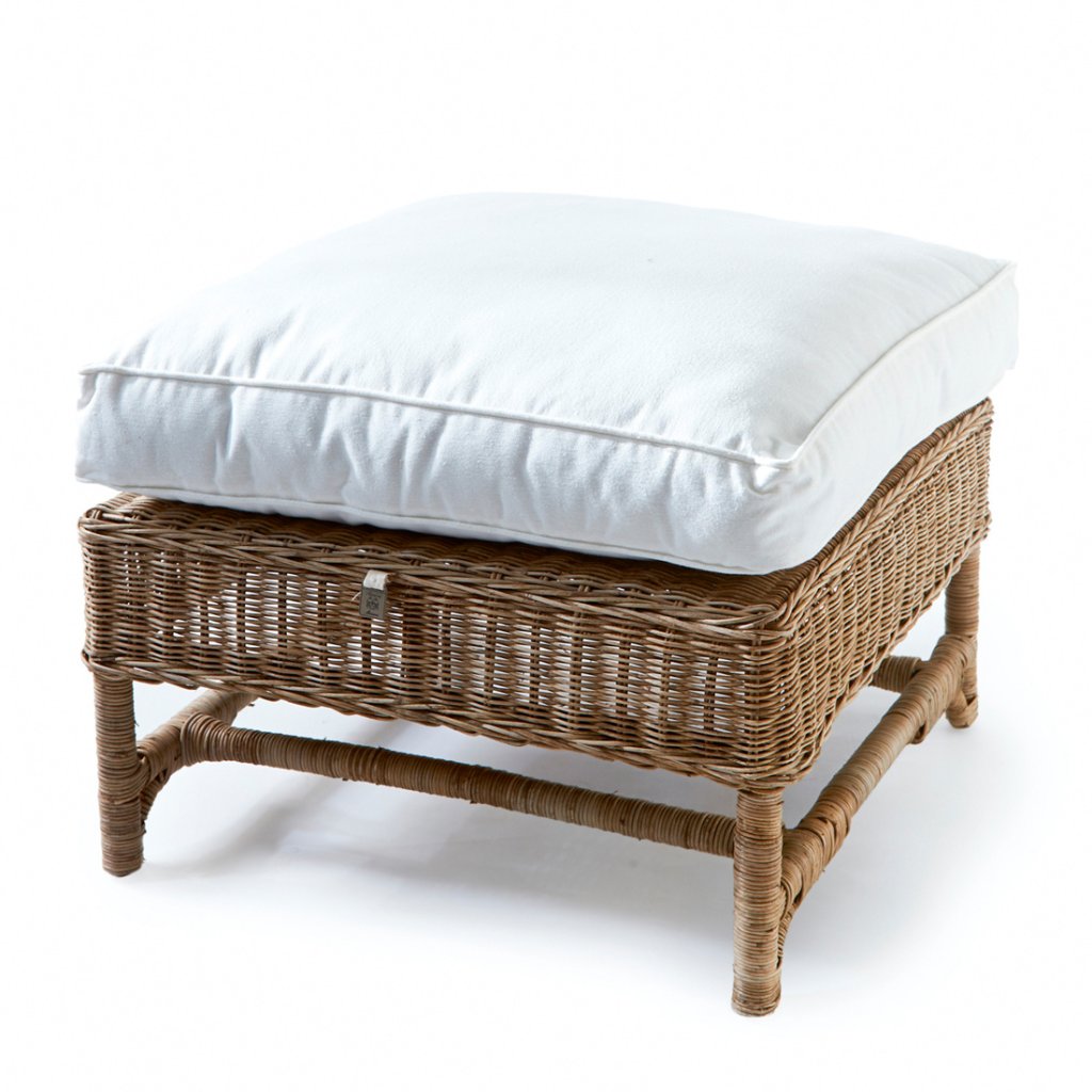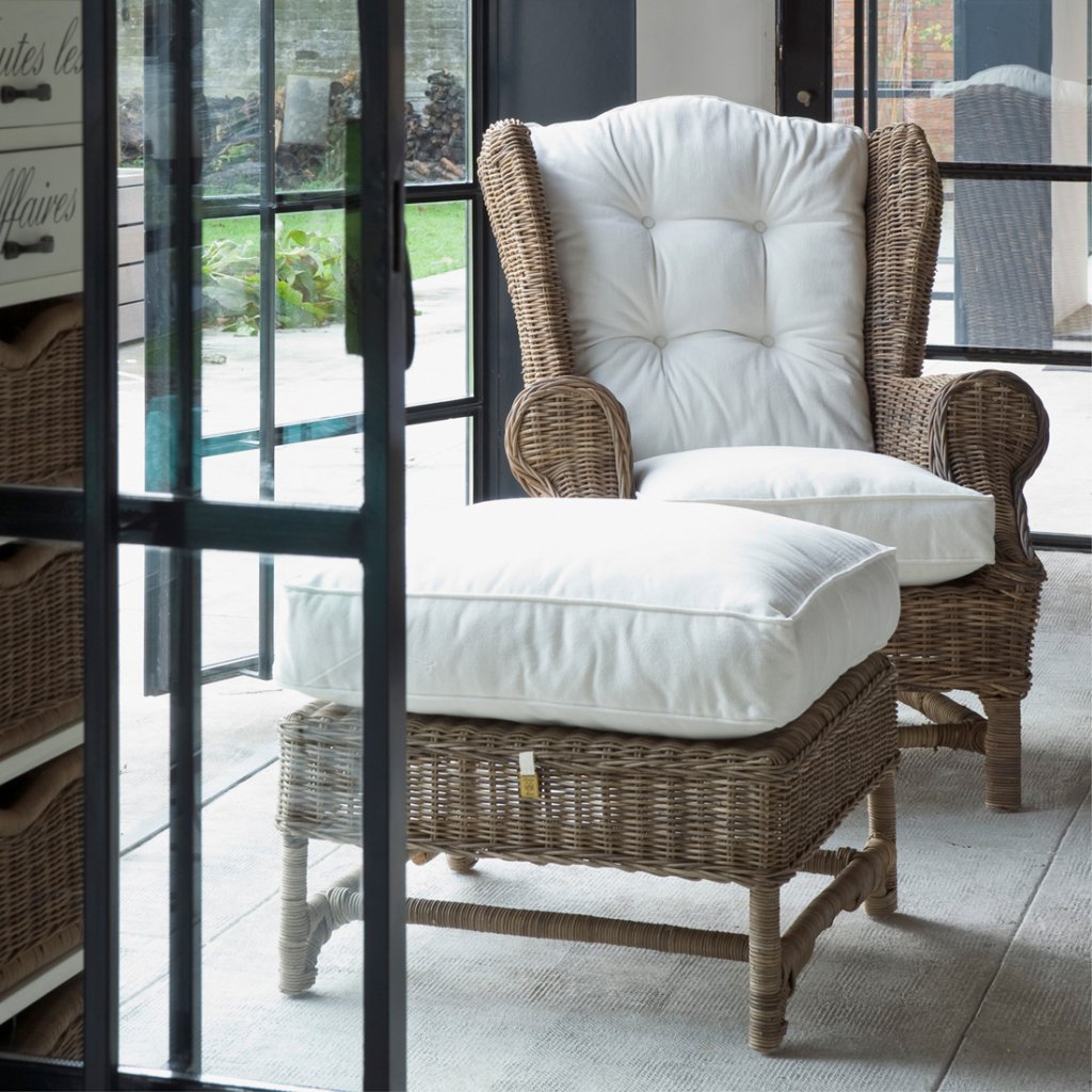 Křeslo Nicholas Wing Chair Footstool je naše osvědčená klasika. Ratan časem přirozeně získává šedou barvu. Tato podnožka se hodí k židli Nicholas Wing Chair (včetně polštářů).
