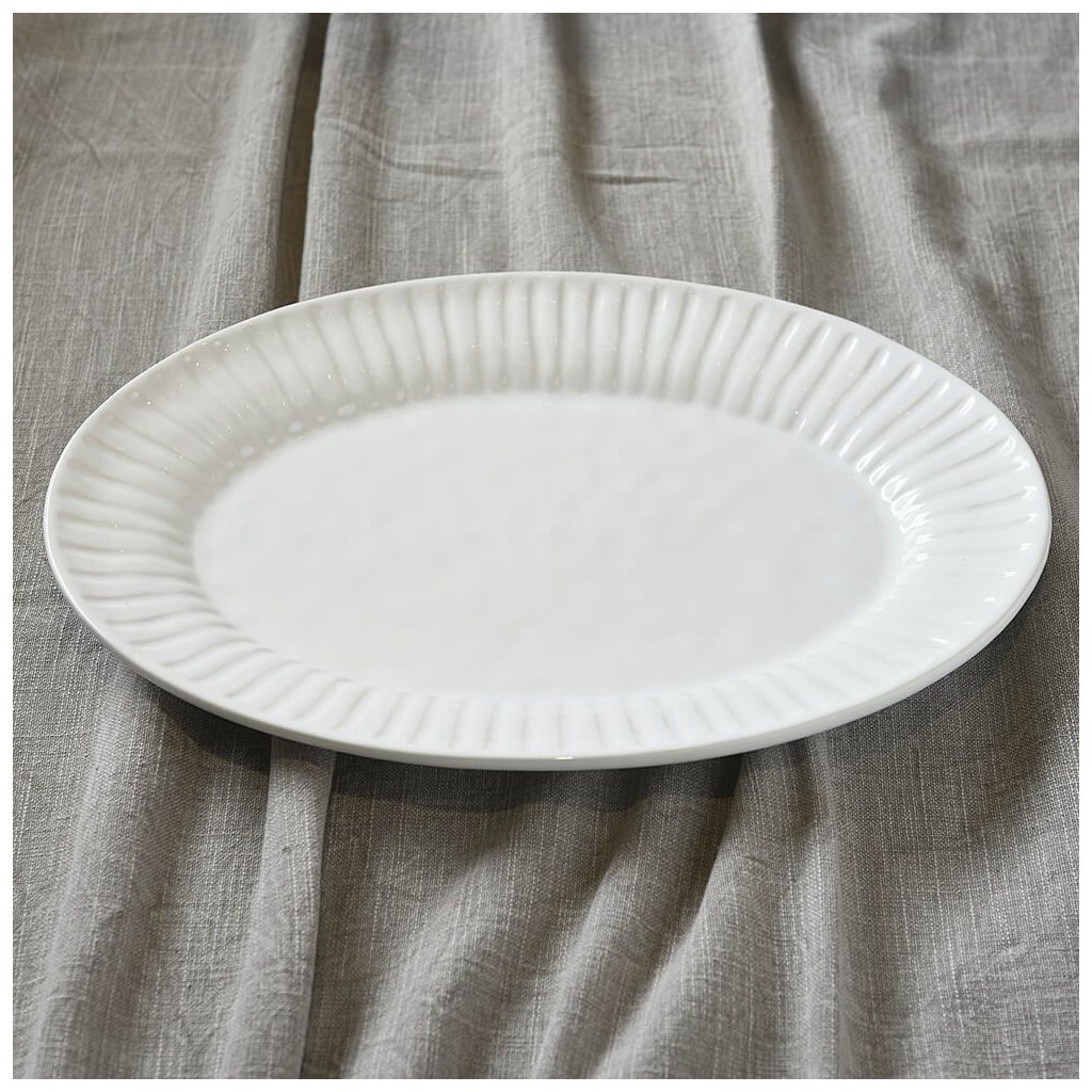 Servírovací talíř Lisboa je klasický oválný servírovací talíř. Okraj tohoto bílého talíře je žebrovaný. Velká mísa je vyrobena z bílého porcelánu a lze ji mýt v myčce nádobí. Skvěle se hodí po večeři, na večírek nebo grilování, pro které je tato prostorná bílá mísa ideální!