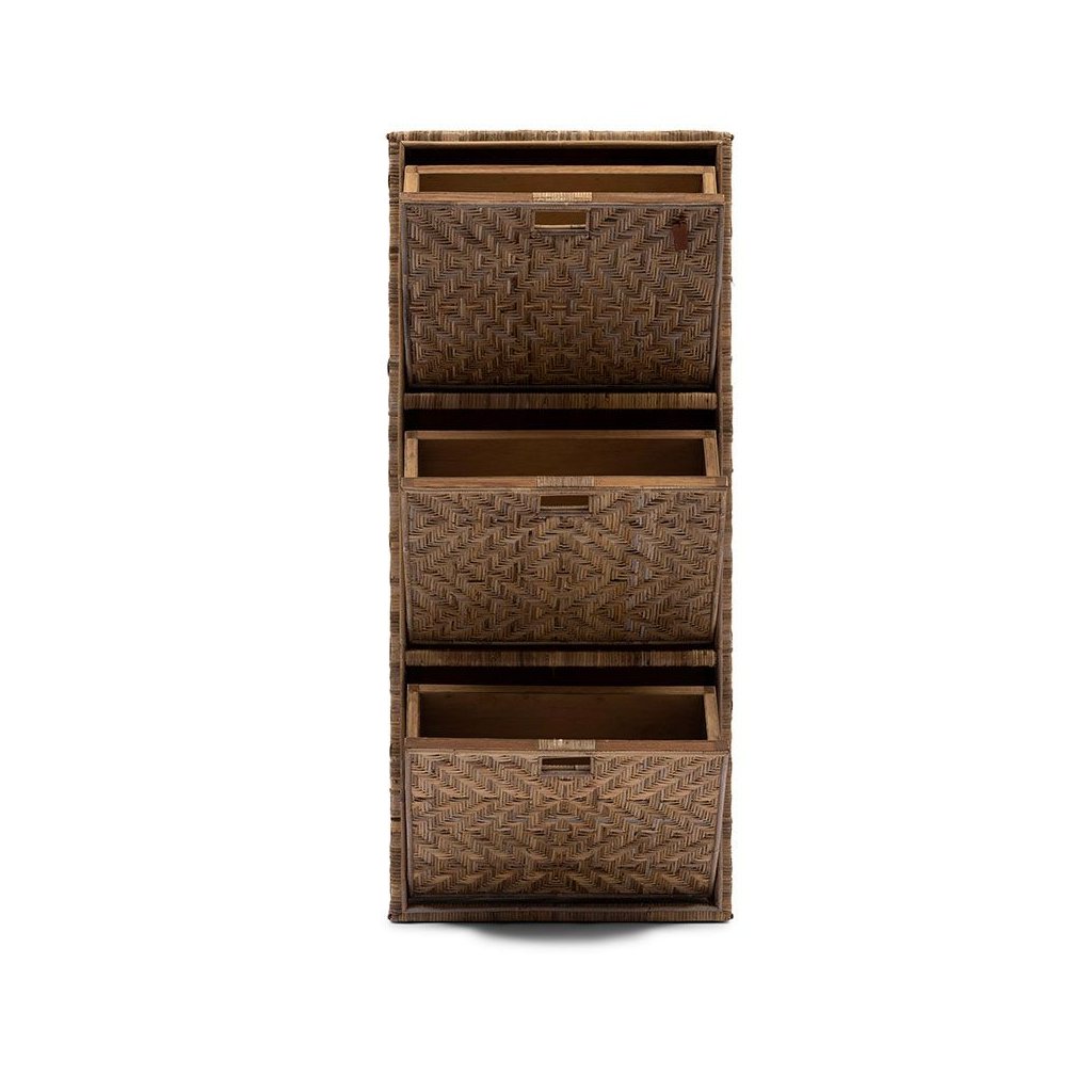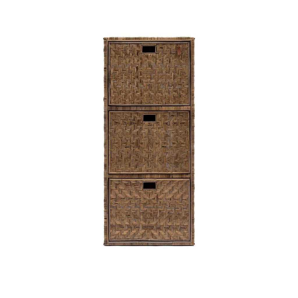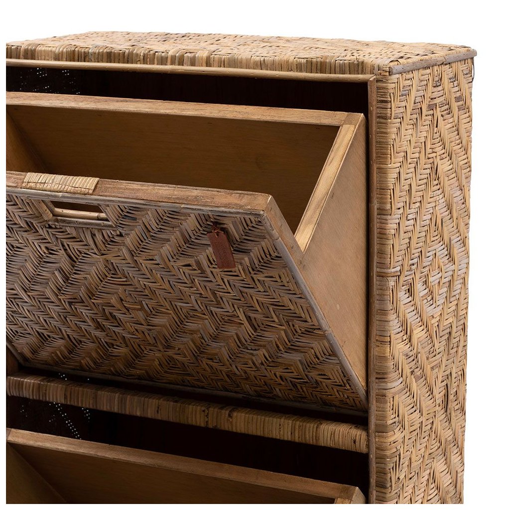 Menton je skříňka na boty se třemi zásuvkami vyrobená z robustního rámu z tvrdého dřeva a loupaného ratanu. Tento přírodní materiál je velmi dekorativně zakomponován na přední straně botníku. Ratan je celý ručně vázaný, zkrátka: krásný botník se zakomponovaným skutečným řemeslným zpracováním.Doplňkové parametry