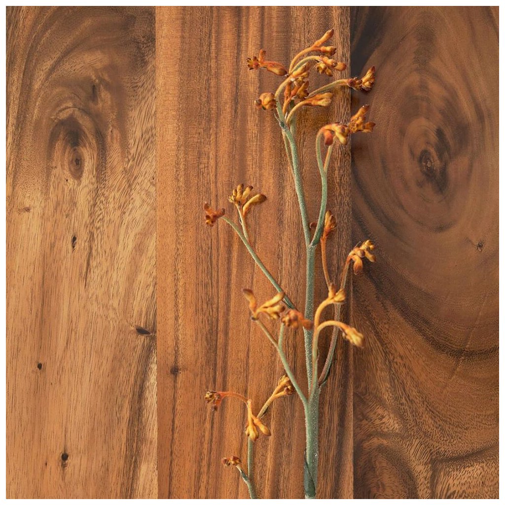 Základem naší kolekce Flare je masivní dřevo Suvar. Toto dřevo je výrazné, s odstíny světle žluté a tmavě čokoládové barvy, které připomínají plameny - odtud jeho název. Nábytek této kolekce je kombinován s černým železem se zlatavým leskem.