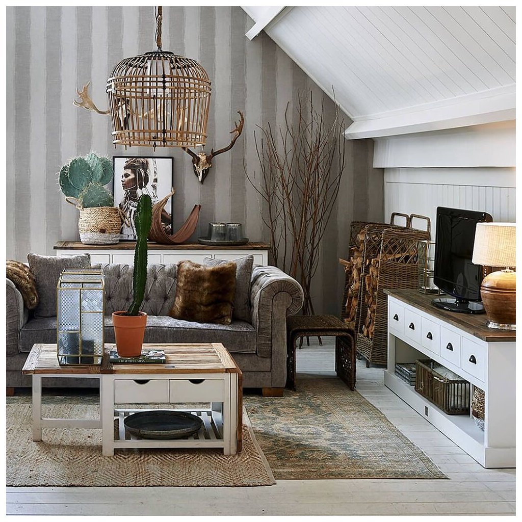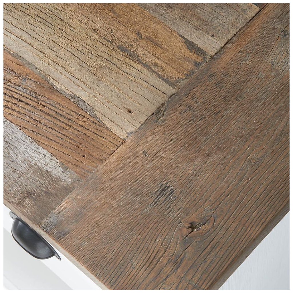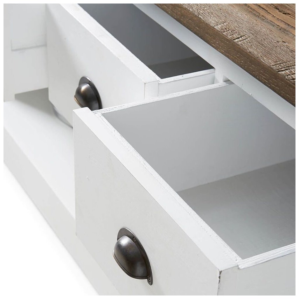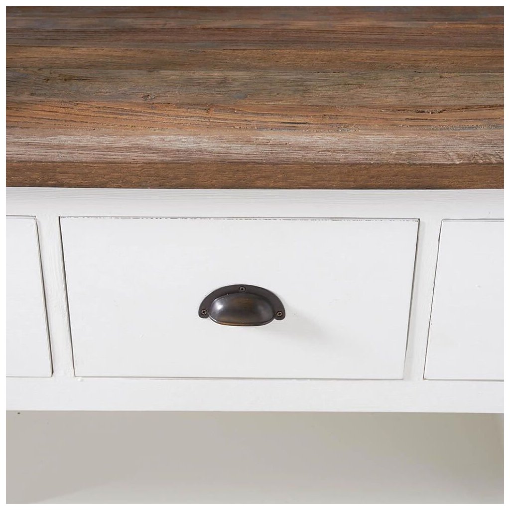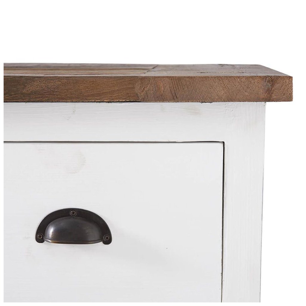 Komoda Newport s plochou obrazovkou z bílého topolového dřeva nabízí spoustu úložného prostoru a má velmi elegantní design. Výrazná povrchová úprava recyklovaného starého jilmového dřeva na horní desce krásně oživuje celkový vzhled. K dostání také v délce 150 cm.Doplňkové parametry