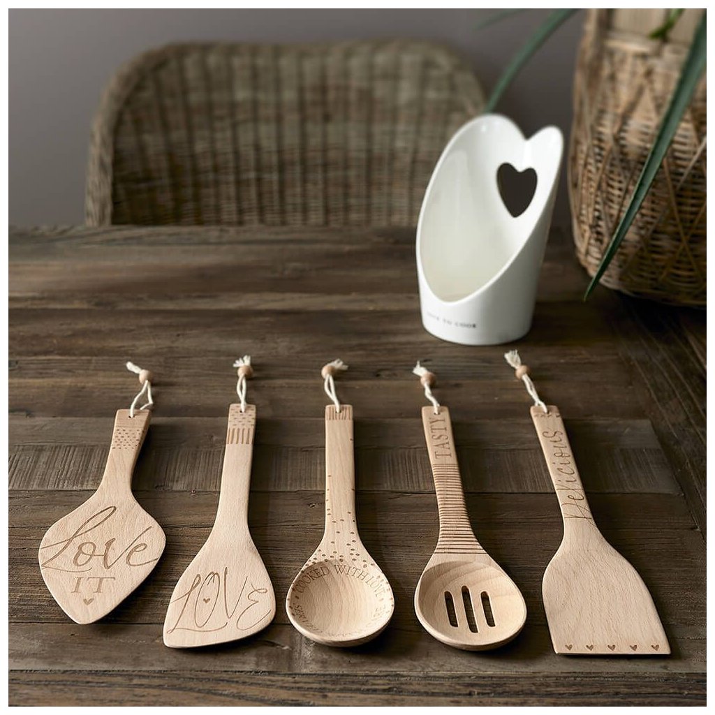 S touto naběračkou chutná všechno lépe. Lžíce Love To Cook je dortová lžíce vyrobená z robustního, hladkého bukového dřeva s krásnou povrchovou úpravou s vypalovanými detaily. Tato řada nabízí celou řadu kuchyňských doplňků.Doplňkové parametry