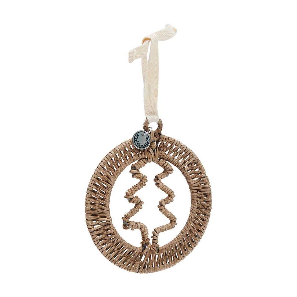 Tento rustikální ratanový věšák na ozdoby na vánoční stromeček má letos tradiční vzhled. Přírodní materiál mu dodává klidný nádech. Všechny naše ratanové předměty jsou vyráběny ručně a tato kulatá ozdoba ve tvaru stromku není výjimkou. Je připevněna pomocí závěsné stuhy.