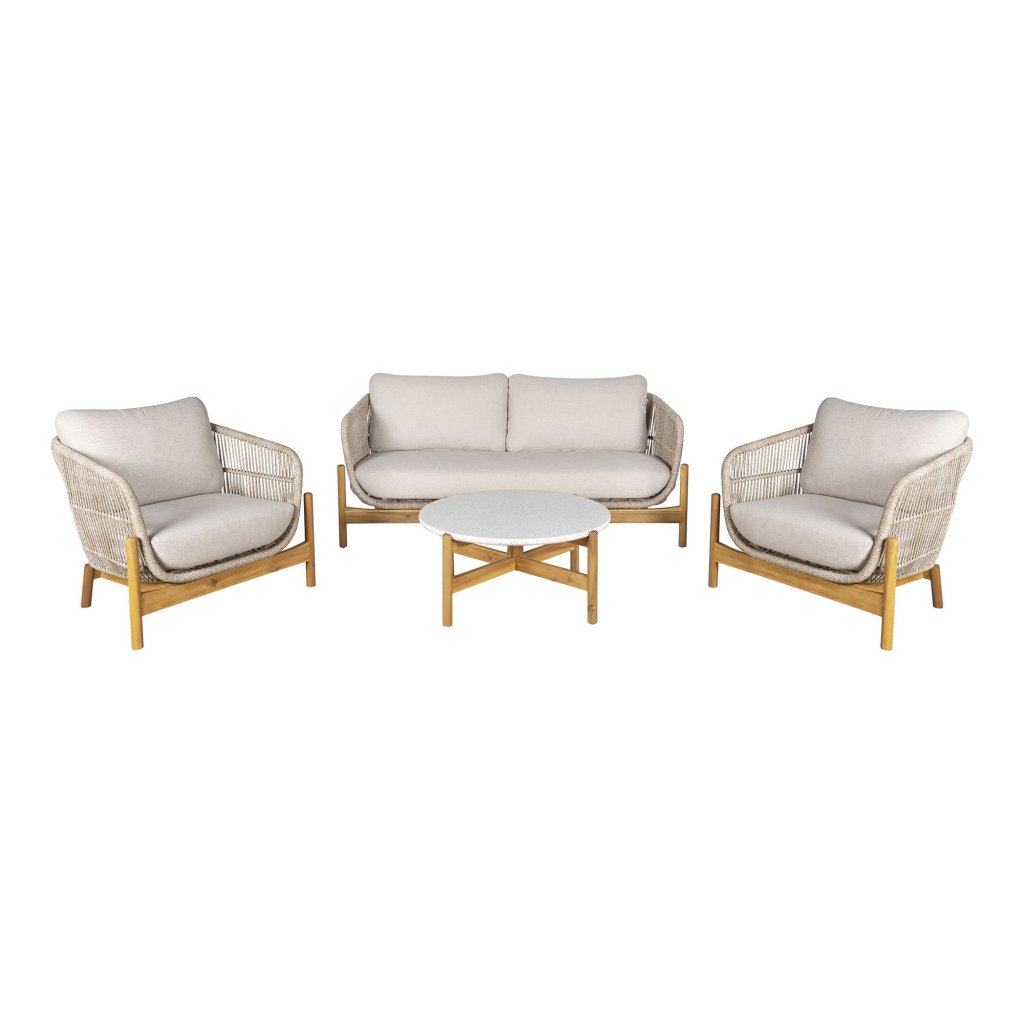 Obývací sestava Terracina je ideálním řešením pro každého, kdo chce vytvořitstylový a pohodlný venkovní obývací prostor. Sada obsahujeprostorná pohovka, dvě křesla a nízký konferenční stolek, které dohromady tvoří harmonický celek vhodný na terasu, zahradu, balkon nebo k bazénu. Čisté linie, neutrální barvy a kvalitní čalounění dodávají sestavě moderní vzhled a zároveň vysoký komfort. Všechny sedací prvky majíměkké polštáře a područkami pro pohodlné sezení během teplých dnů a večerů. Konferenční stolek s pevným povrchem je ideální pro servírování nápojů, občerstvení nebo dekorací. Díky použitémuodolný materiál sestava je vhodná pro venkovní použití a doporučujeme ji umístit na chráněné nebo chráněné místo. Terracina Lounge Set je dokonalou kombinacífunkčnost, pohodlí a moderní designkterá se stane centrem vašich letních zážitků.Doplňkové parametry