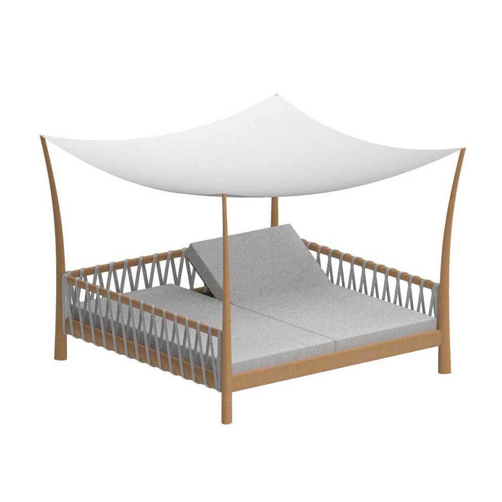 Tento kříženec postele, pohovky a lehátka je maximálně pohodlný a je ideálním místem pro život u bazénu, kde můžete celý den snít ...Název Tuskany je odvozen od čtyř sloupů ve tvaru kapusty, ke kterým je připevněna sluneční clona batyline. V teakové konstrukci jsou umístěny dvě mřížky, jejichž část opěradla lze pro větší pohodlí zvednout jednoduchým zatažením za samostatnou páčku.