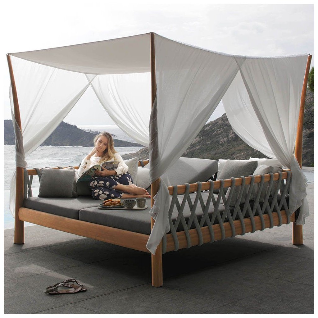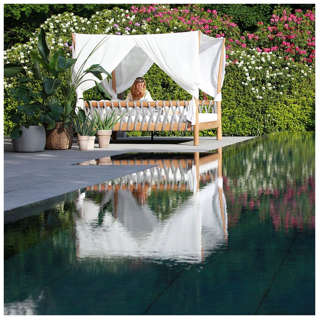Ležet na těchto silných a měkkých polštářích QuickDry je naprostý luxus. Volitelné závěsy doplní váš zenový okamžik, ať už jsou zavřené pro soukromí, nebo omotané kolem tyčí.