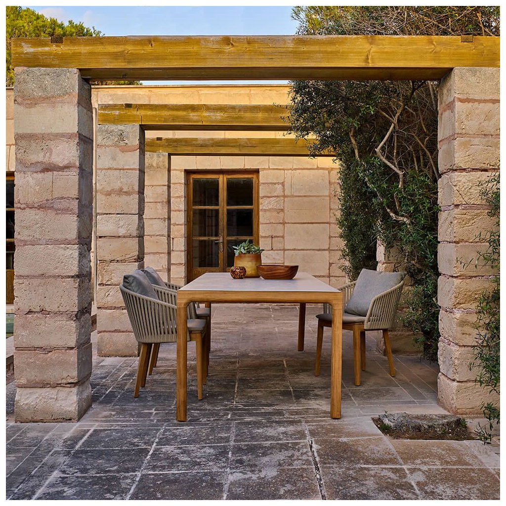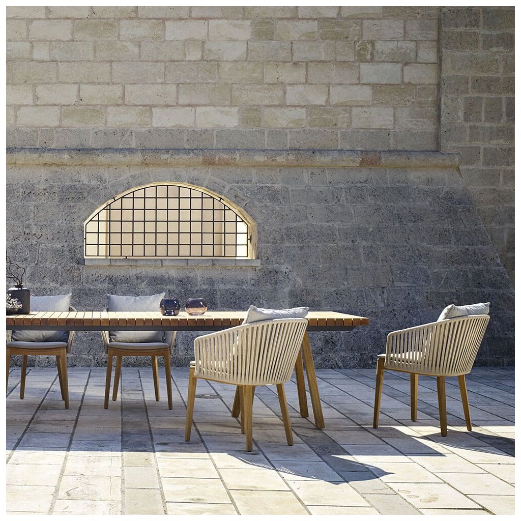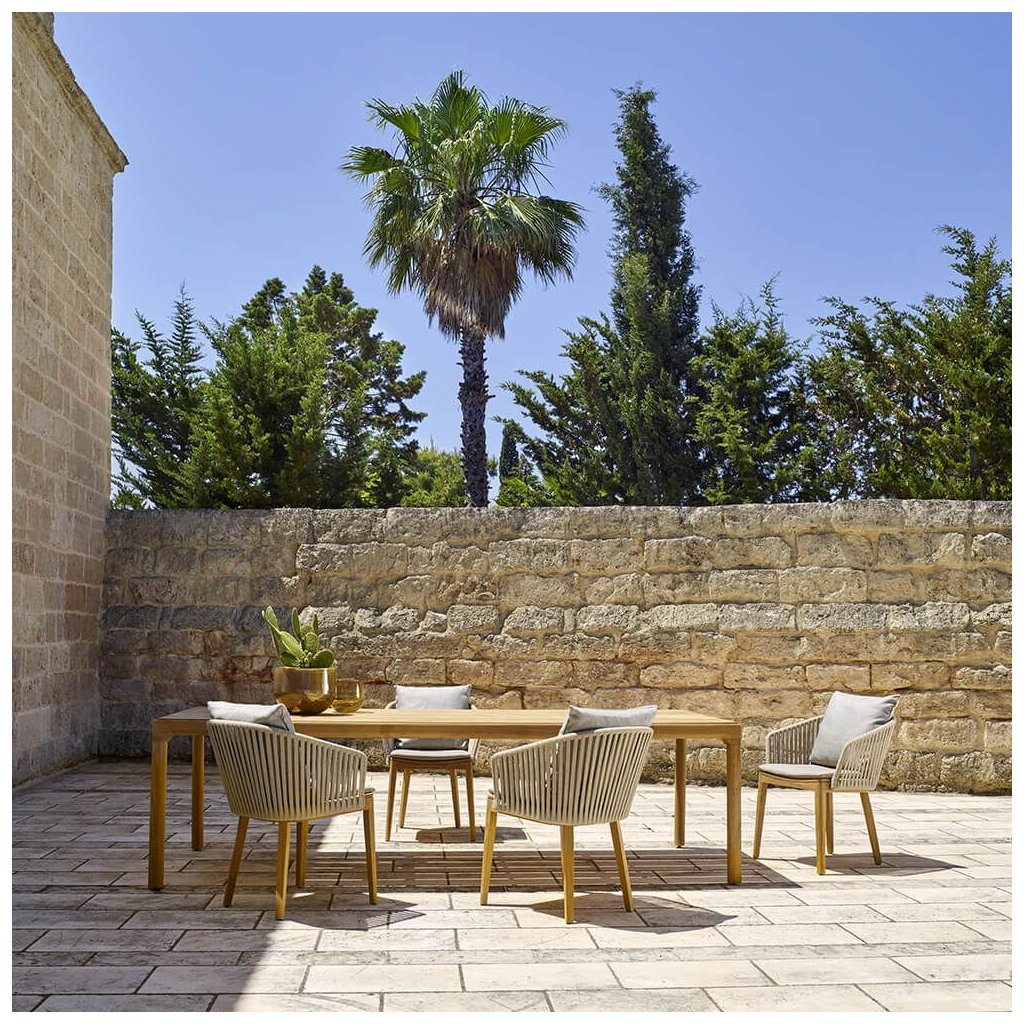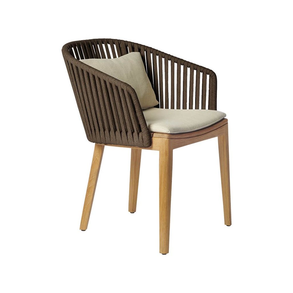 Jídelní židle Mood vyrobená z nejkvalitnějšího materiáluteakové dřevo a trikordová vazba se skládá z polyolefinu a je odolný vůči povětrnostním vlivům, přesto má velmi jemný vzhled.