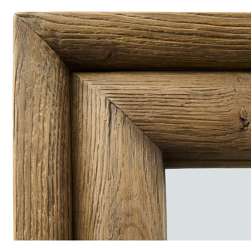 Toto velké obdélníkové zrcadlo vyrobené z regenerovaného dubového dřeva vyzařuje rustikální kouzlo. Použití regenerovaného dřeva zvýrazňuje přirozenou krásu struktury dřeva a činí z tohoto zrcadla stylový a odolný doplněk. Stručně řečeno: krásně upoutá pozornost a svým přírodním a rafinovaným vzhledem doplní každý interiér.Doplňkové parametry