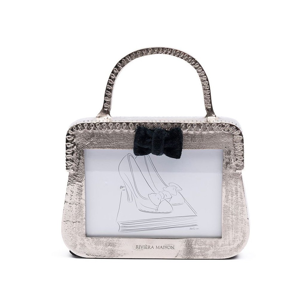 Fotorámik RM Handbag je hravým doplnkom kolekcie. Tento fotorámik vyrobený výlučne z hliníka má tvar kabelky a zmestí sa doň fotografia s rozmermi 10x15 cm. Všetko je detailne prepracované, napríklad reliéfna rukoväť a elegantná mašľa, ktorá zdobí prednú stranu. Logo RM je vyryté do hliníka.