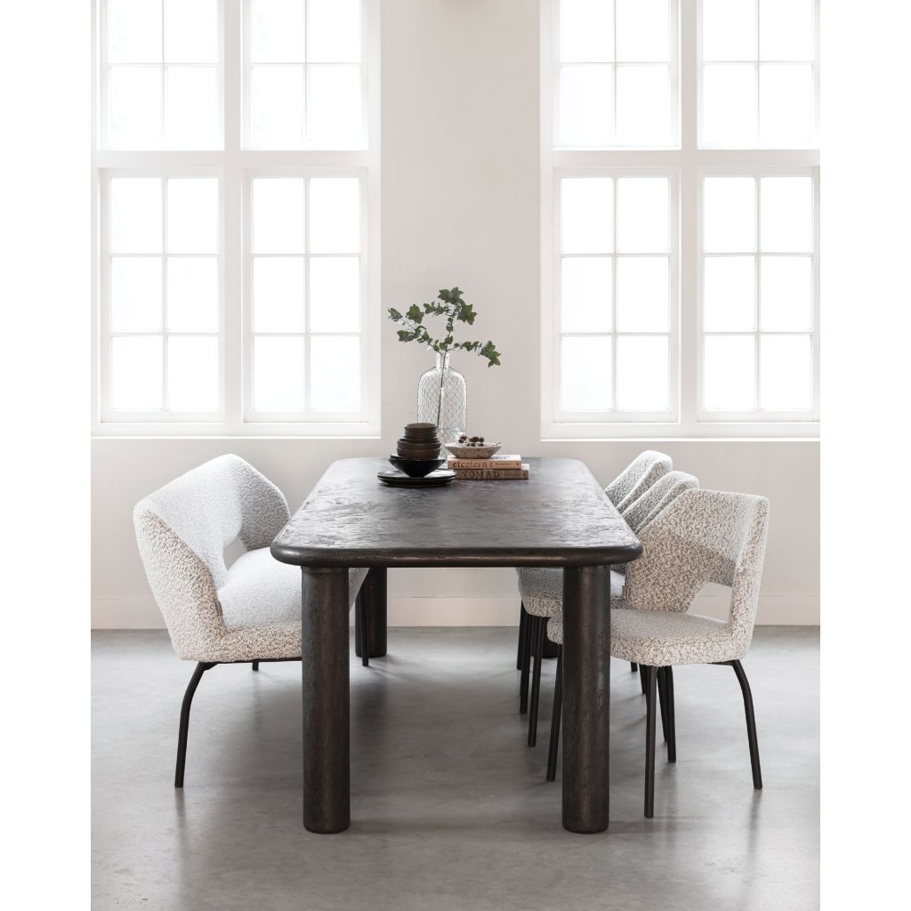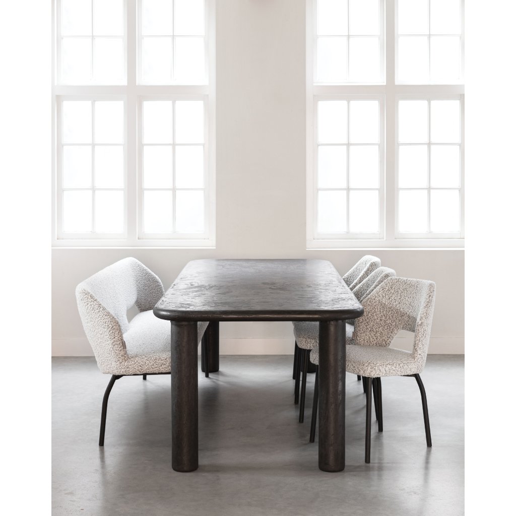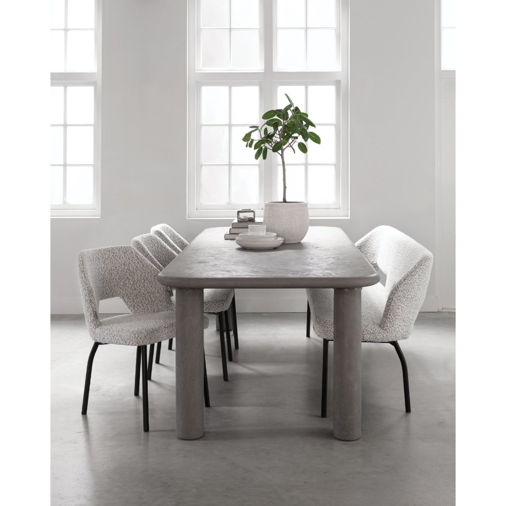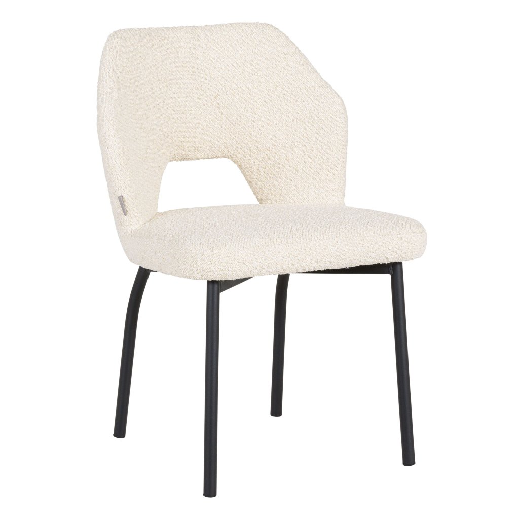 Jedálenská stolička Bloom prináša spojenie pohodlia a moderného dizajnu. Stabilná konštrukcia z kovu je doplnená mäkkým čalúnením z látky bouclé, ktorá pôsobí elegantne a príjemne na dotyk. Vďaka čiernym nohám má stolička nadčasový vzhľad, ktorý sa ľahko kombinuje s rôznymi štýlmi interiéru. Dostupná je vo viacerých farebných prevedeniach, takže si môžete vybrať variant, ktorý dokonale zapadne do vašej jedálne či kuchyne.Dodatočné parametre