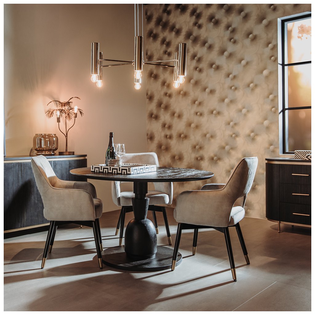 Jedálenská stolička Lenno 180 spája moderný dizajn s praktickým komfortom. Stabilná konštrukcia z kovu a kvalitné čalúnenie z látky poskytujú pohodlné sedenie, zatiaľ čo funkcia otočenia o 180° prináša flexibilitu do každodenného používania. Stolička je dostupná vo viacerých farebných prevedeniach a vybrať si môžete aj prevedenie nožičiek – elegantné zlaté alebo decentné čierne. Ideálna voľba do modernej jedálne či kuchyne.