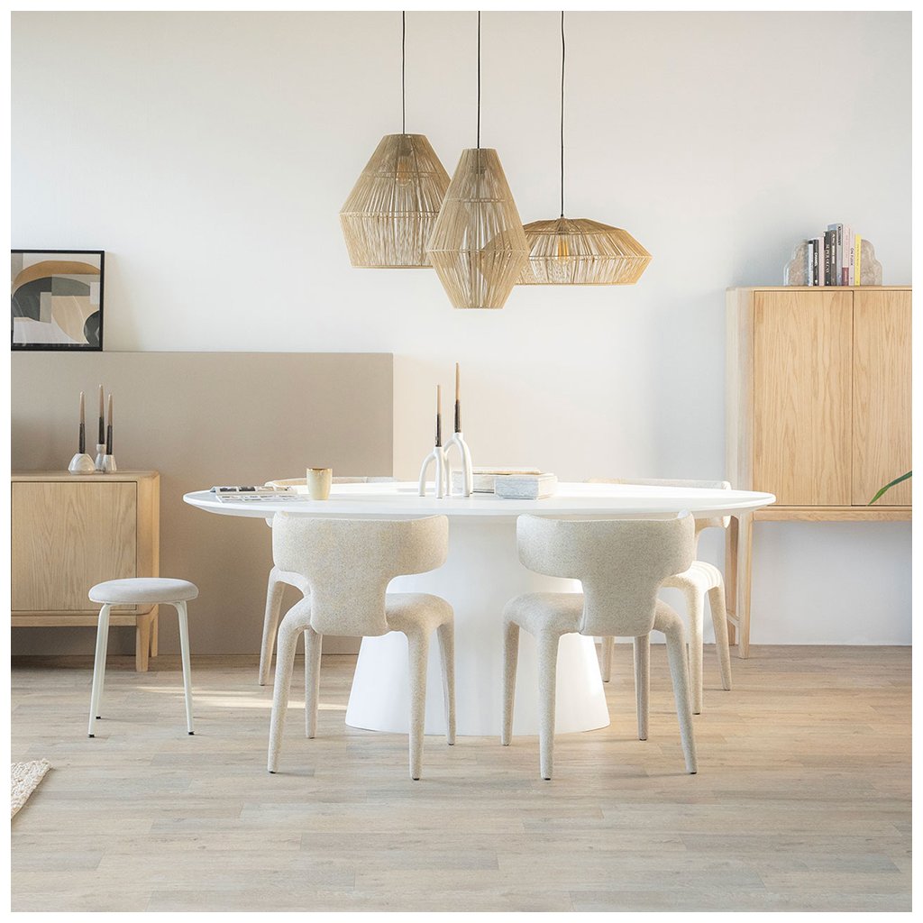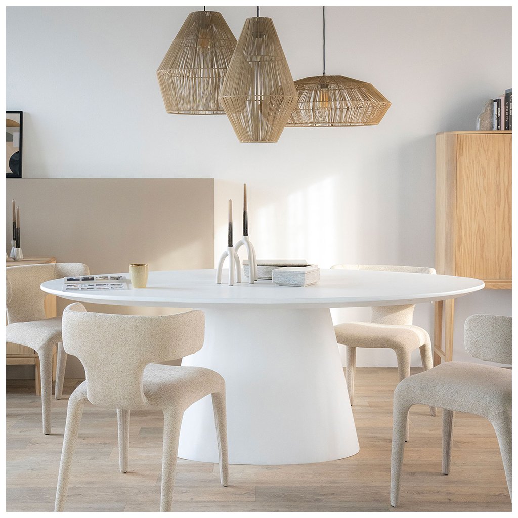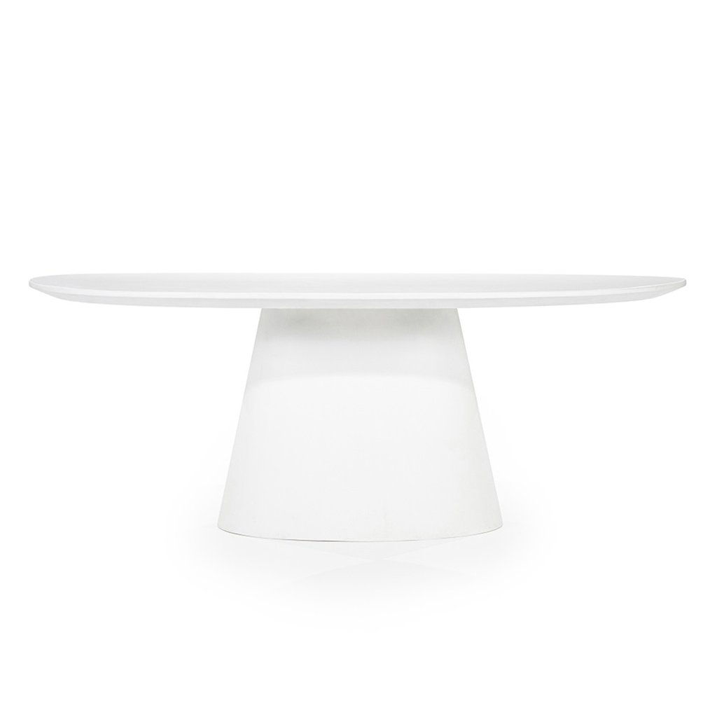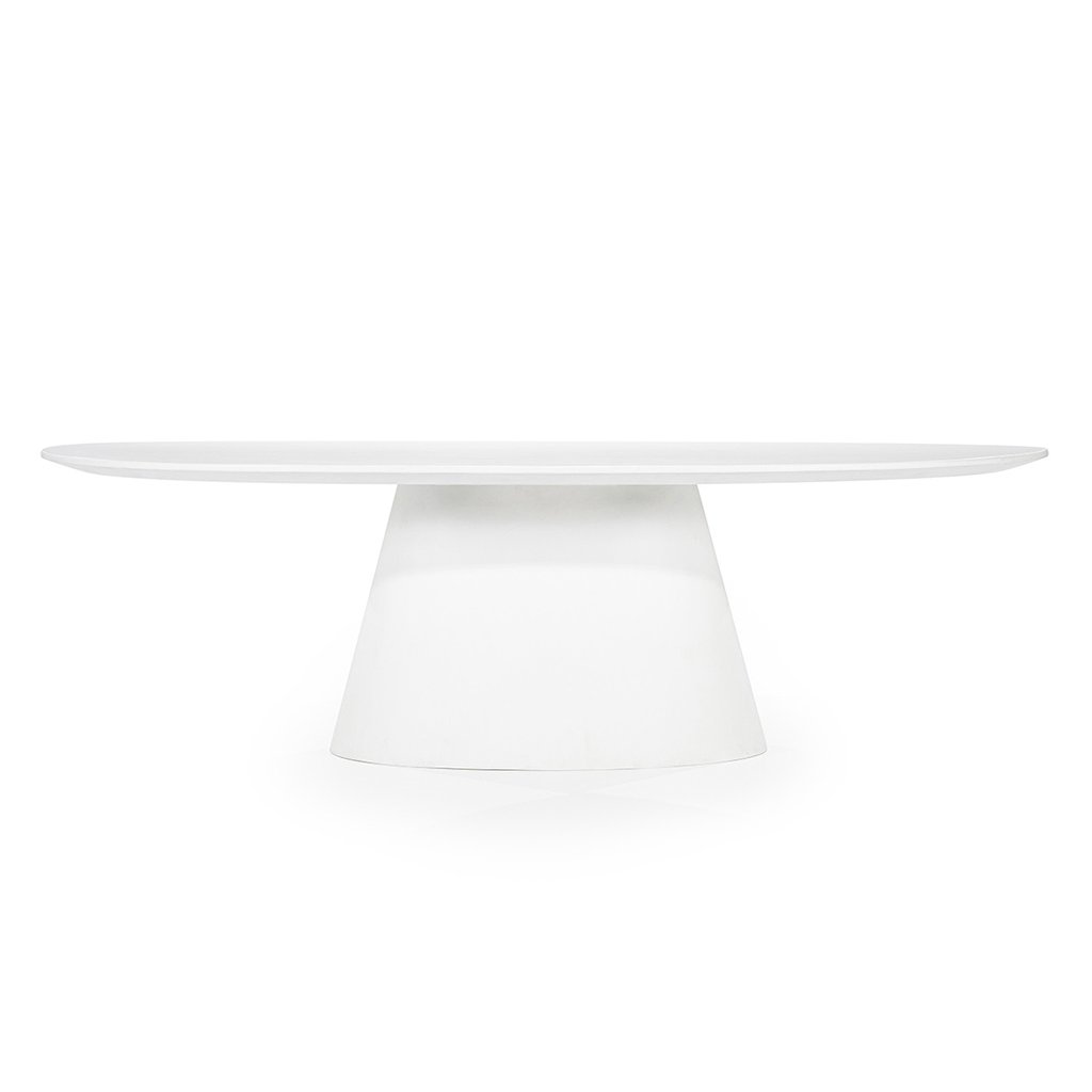 Dominantná kužeľová podnož dodáva stolu stabilitu aj osobitý charakter. Vďaka oválnemu tvaru sa okolo neho pohodlne pohybuje a umožňuje flexibilnejšie rozmiestnenie stoličiek než klasický obdĺžnikový stôl.