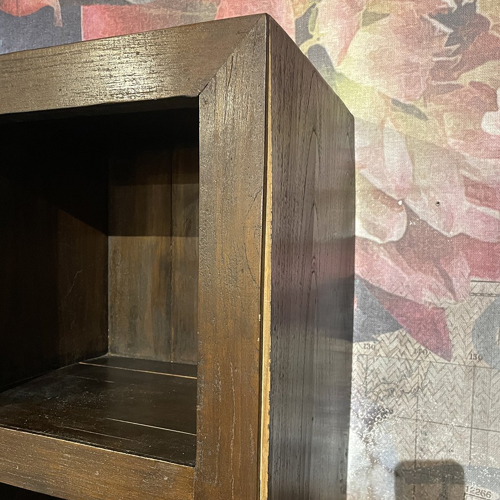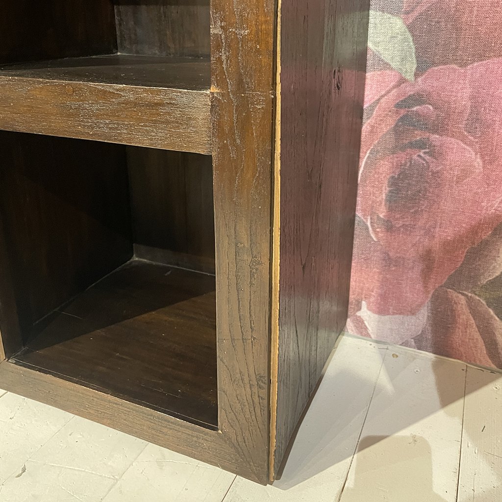 Otvorená knižnica z mangového dreva. Posledný kus z jednej z našich starších kolekcií. Na knižnici je niekoľko malých prasklín ( viď foto.), preto je predajná cena nižšia. Napriek drobným nedokonalostiam je knižnica stále veľmi pekná, robustná a stále urobí "veľa muziky"
