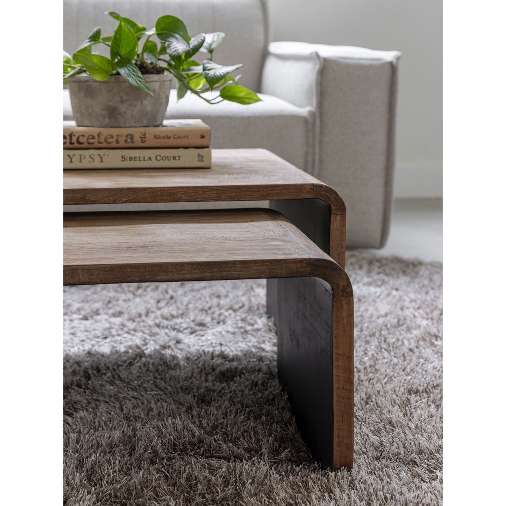 Súprava 2 konferenčných stolíkov, ktoré sa dajú rôzne kombinovať alebo ich môžete využiť samostatne. Krásna kombinácia recyklovaného teakového dreva s kovovými a čiernymi prvkami.