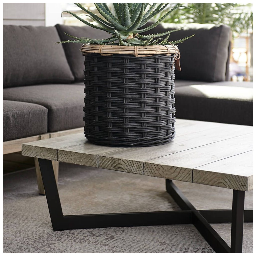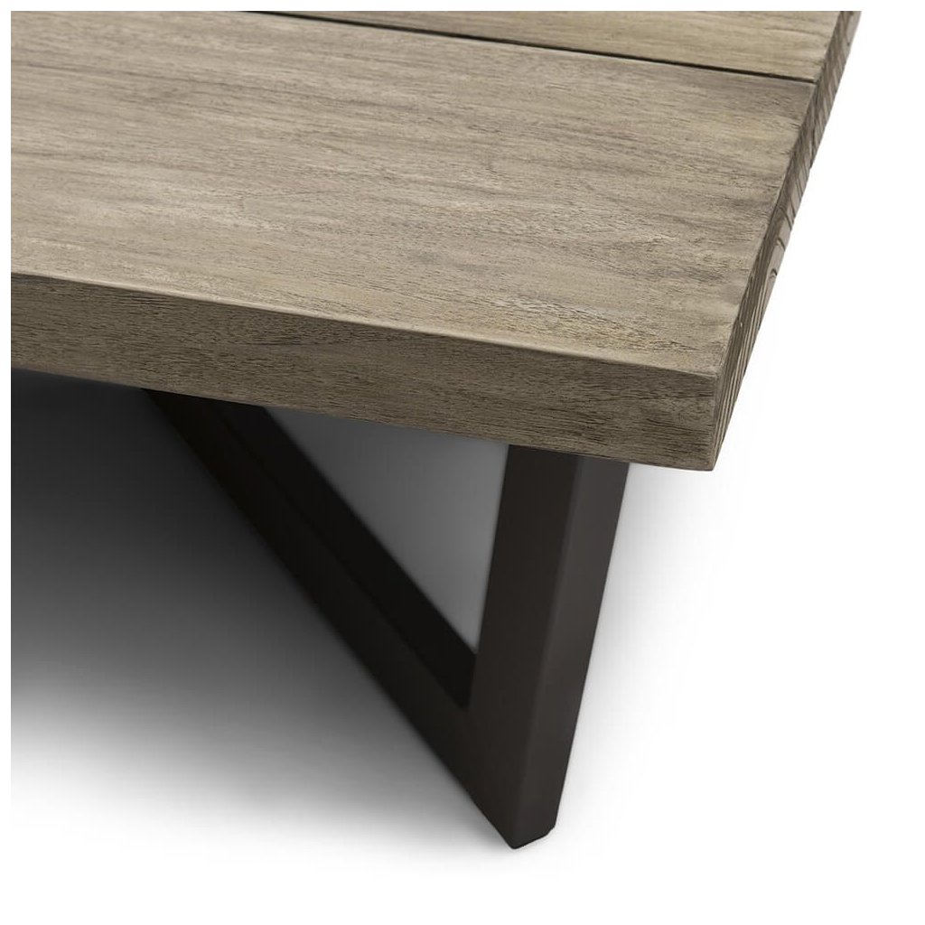 Robustný konferenčný stolík je vyrobený z ľahko stárlého teaku s uhlopriečne skríženými nohami z tmavého hliníka. Stôl sa skladá z širokých dosiek umiestnených spoločne so šikmou vonkajšou doskou.Dodatočné parametre