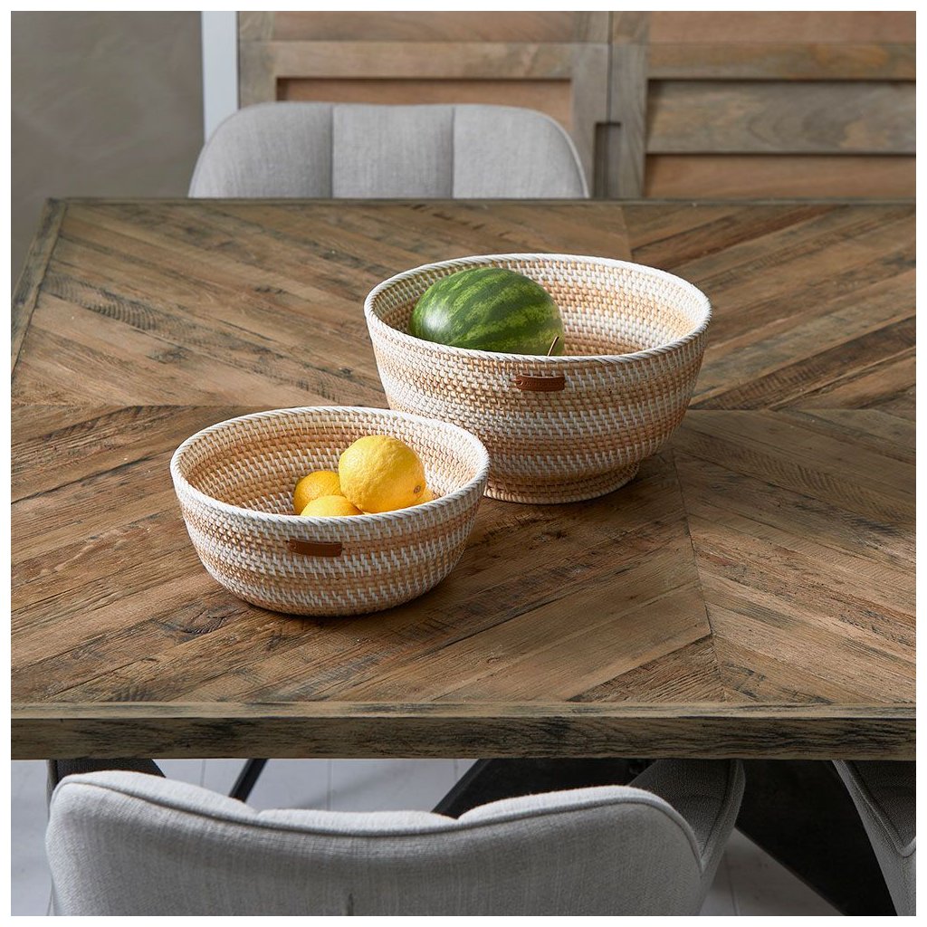 Ide o sadu dvoch košíkov Crystal Bay Bowl. Okrúhle košíky môžu skvele poslúžiť aj ako misky. Najväčšia, napríklad ako miska na ovocie, stojí na malom podstavci. Farbenie niektorých prúžkov ručne tkaného prútia na bielo vytvára svieži vzhľad. Dostupné v rôznych prevedeniach.Dodatočné parametre