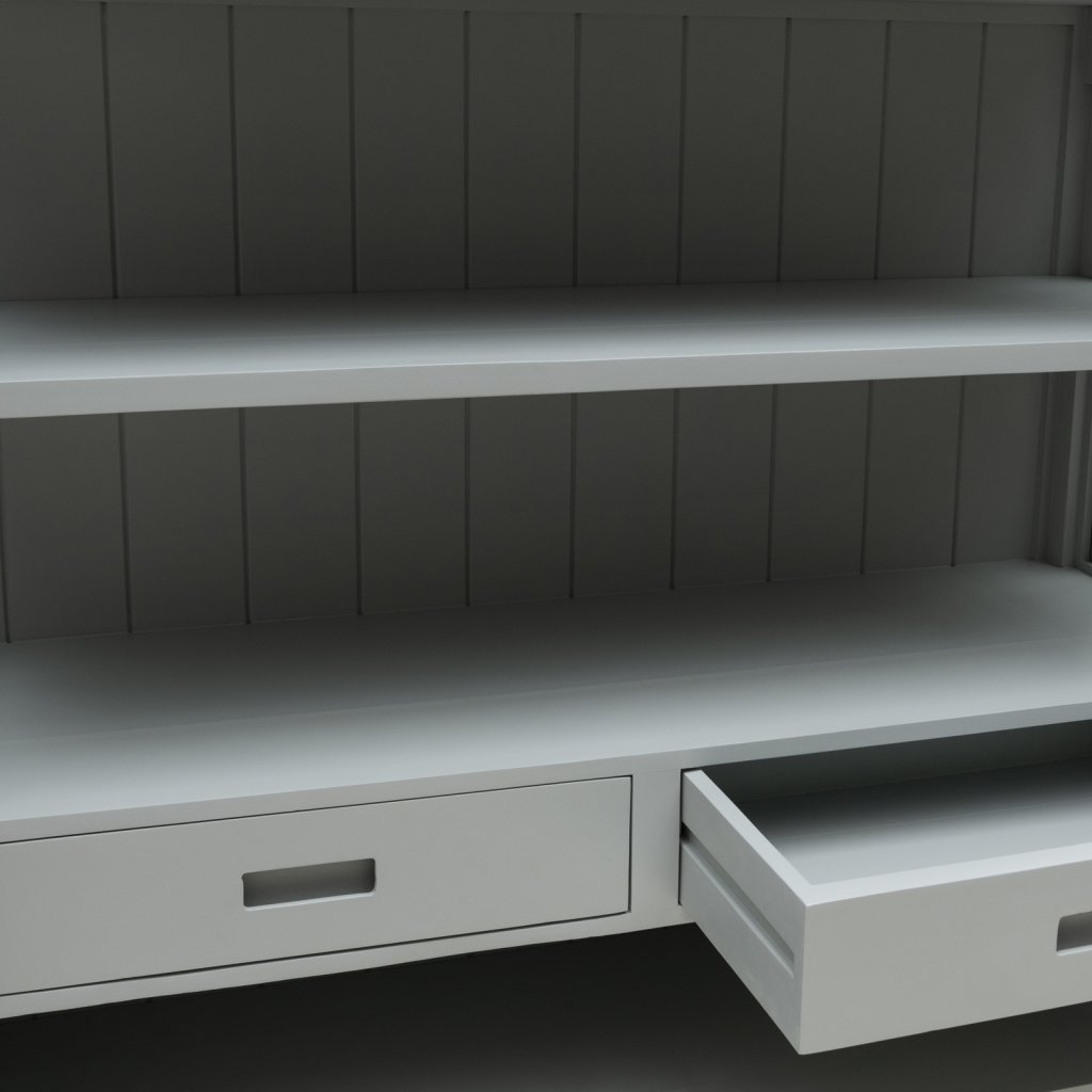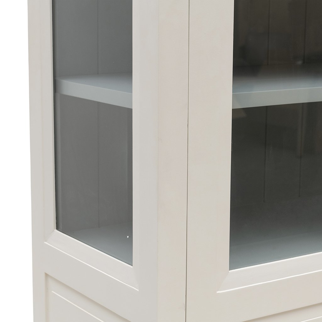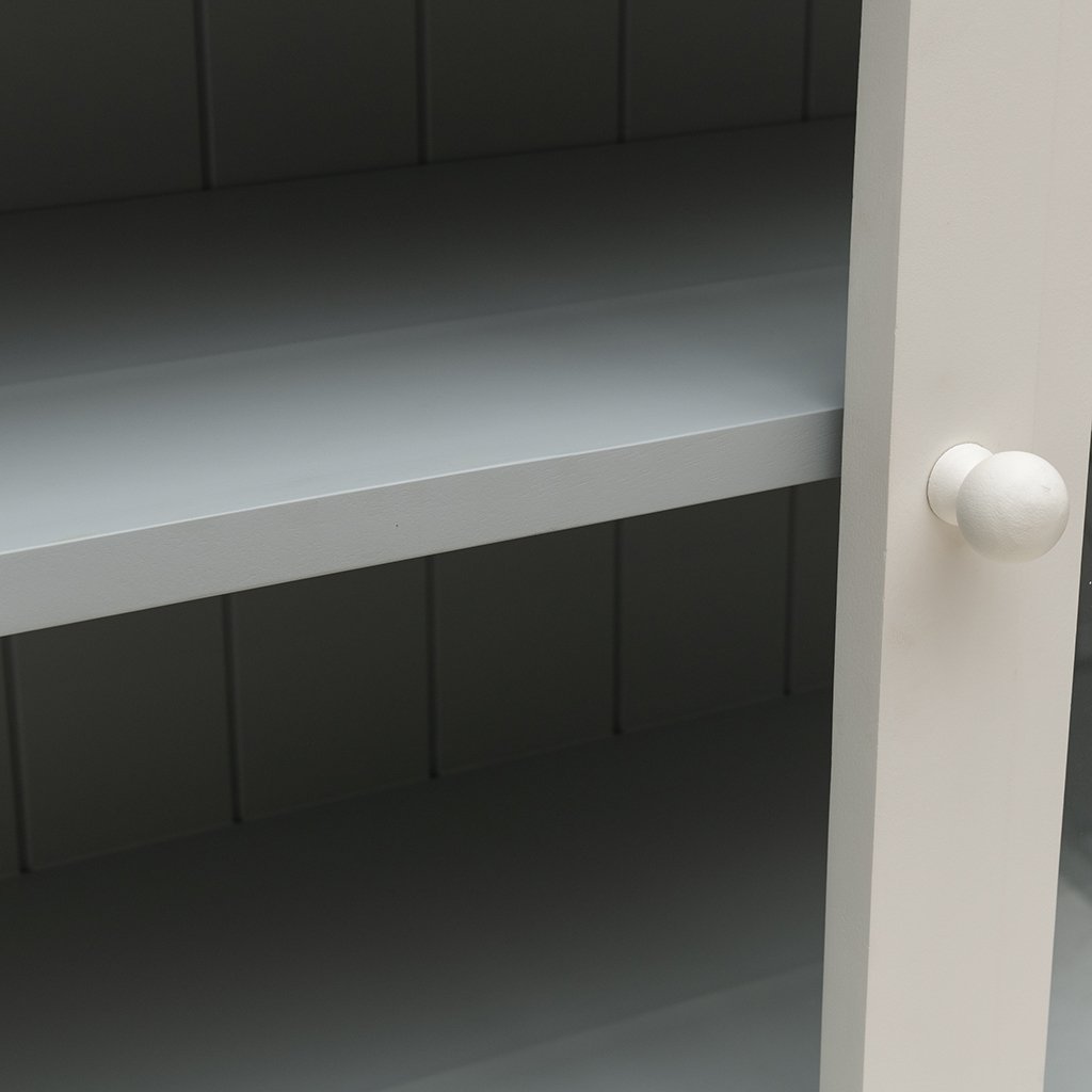 Predstavujeme vám bielu kredenc Bedford: sofistikovanú kuchynskú kredenc, ktorá dokonale spája eleganciu a funkčnosť. Nadčasové kúzlo tejto kredenca spočíva v jej pokojnej farebnej palete. Sklenené dvierka v hornej časti vám umožňujú elegantne vystaviť svoje obľúbené predmety, zatiaľ čo odnímateľné police vám dávajú voľnosť pri vytváraní vlastného usporiadania. Dodajte svojmu interiéru nádych elegancie a flexibility s kredencom Bedford.