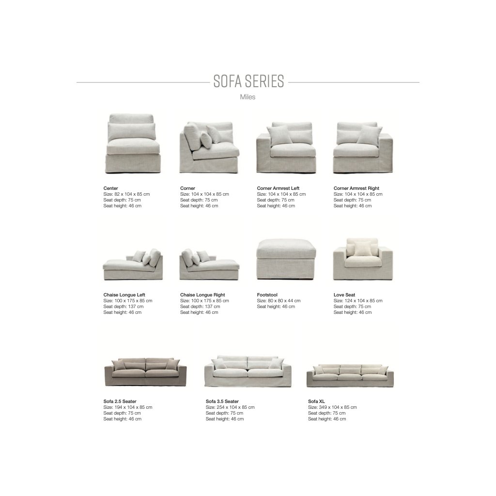 Kolekcia Miles sa skladá z veľkého kresla (Love Seat), klasických sedačiek rôznych veľkostí a môže sa dodávať aj v moduloch, takže si súpravu môžete zostaviť podľa svojich potrieb, napríklad ako rohovú sedačku alebo sedačku v tvare U.