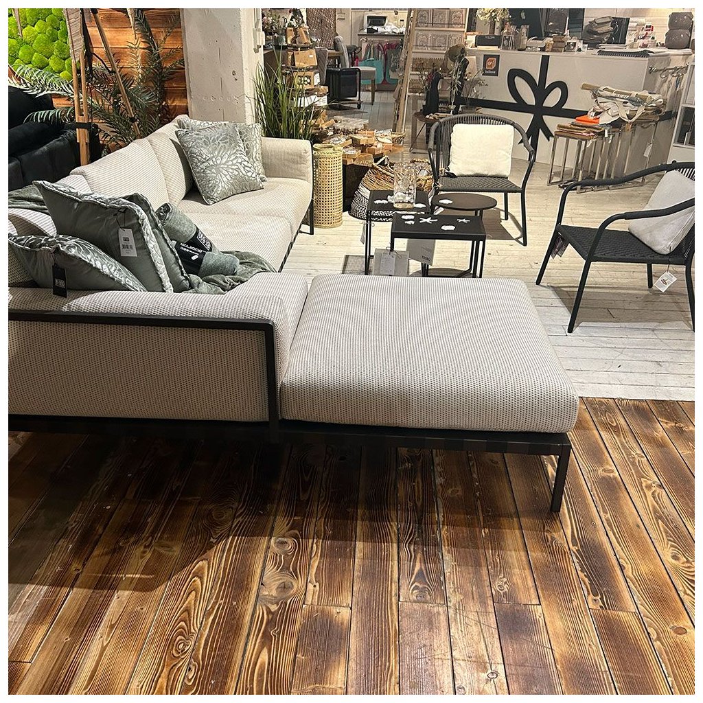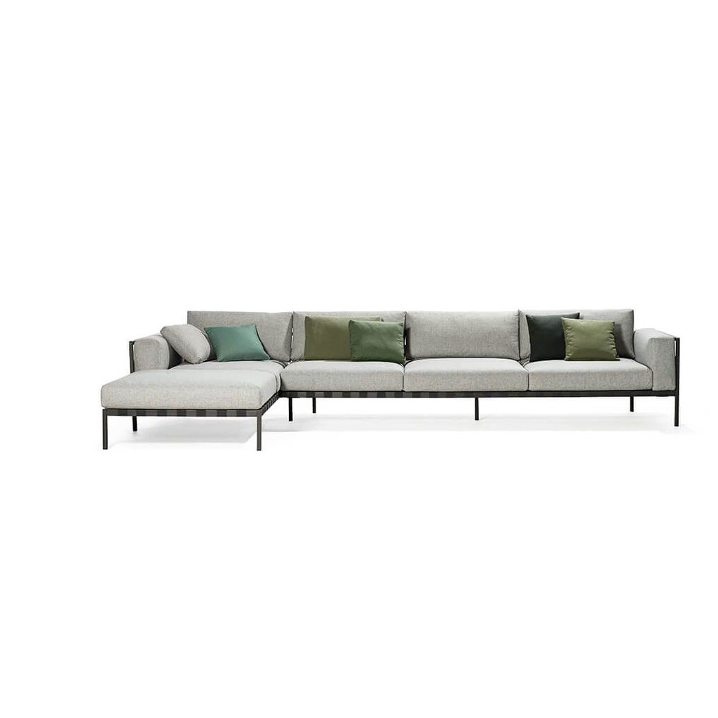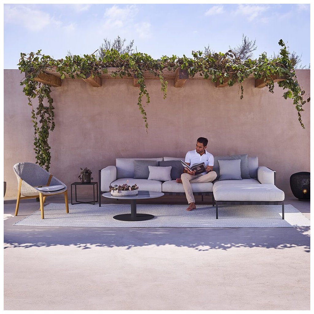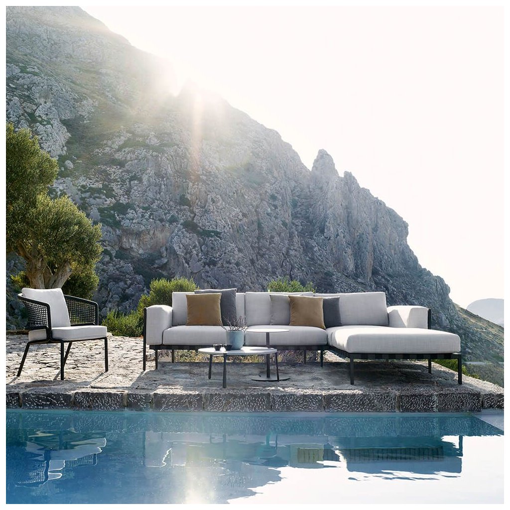 Je to naša najobľúbenenšia a najpredávanejšia sedačka. Osobitná pozornosť sa venuje vonkajším vankúšom, ktoré môžu zostať vonku počas celej sezóny. Vzdušná náplň je pokrytá vodotesným laminovaným polypropylénovým obalom, ktorý je vode odolný. Všetky stehy majú navyše vnútorný kryt, ktorý zabraňuje prenikaniu vody. Hliníkový rám pohovky je potiahnutý pieskovaním s ultra odolným lakom pre vyššiu odolnosť proti poškriabaniu.
