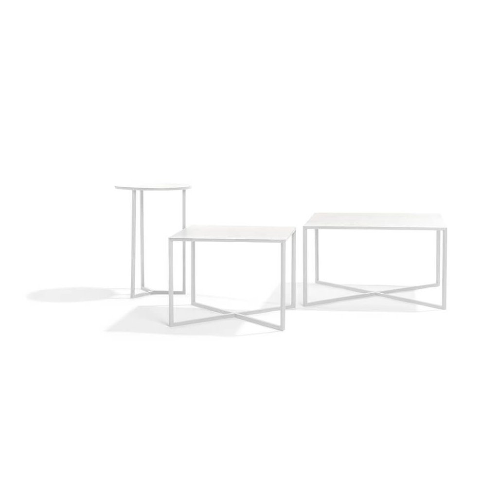 Nové stolíky Natal Alu X z matného hliníka potiahnutého pieskovaním kombinujú funkčnosť a jemný moderný dizajn. Tieto viacúčelové stoly sú k dispozícii v bielej, bambusovej, vínovej a bielej farbe. Môžete si tiež vybrať z rôznych výšok a veľkostí, čo znamená, že Natal Alu X bude dopĺňať akékoľvek vonkajšie prostredie.