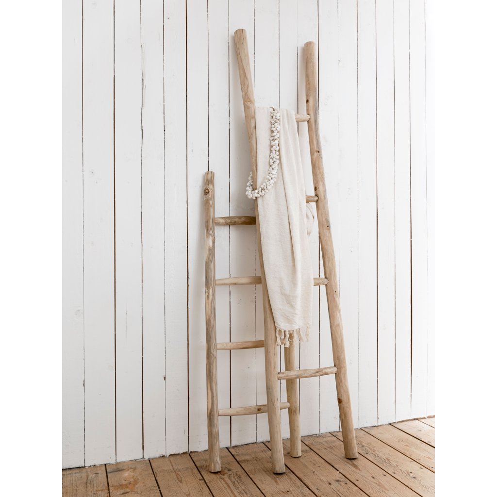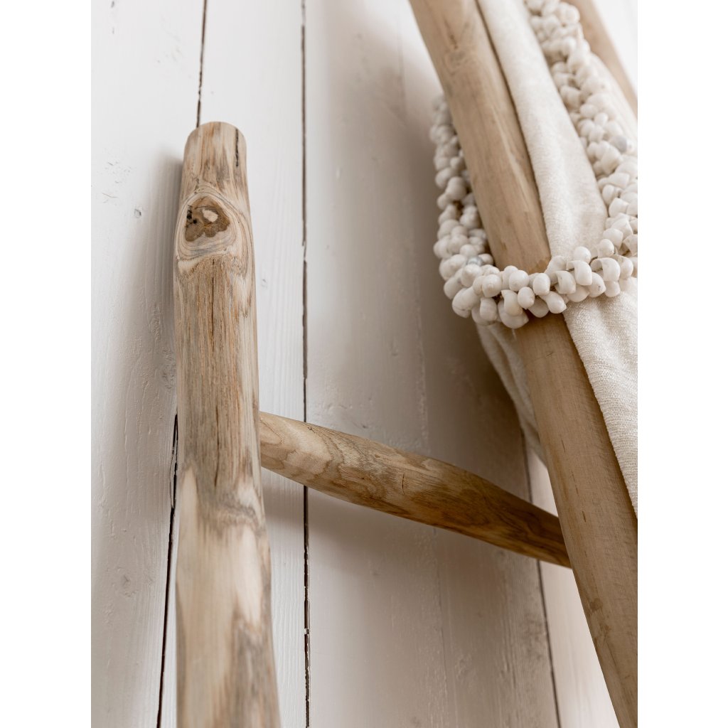 Rebrík Bohemian je originálnym doplnkom, ktorý do interiéru prináša prírodný šarm a autentický dizajn. Vyrobený z teakových konárov a spracovaný ručnou prácou, každý kus je jedinečný svojou kresbou a prirodzenou štruktúrou dreva. Rebrík je ideálny na odkladanie uterákov, textílií či dekorácií a zároveň pôsobí ako výrazný dizajnový prvok v kúpeľni, spálni alebo obývačke. Predáva sa po 2 kusoch.Dodatočné parametre