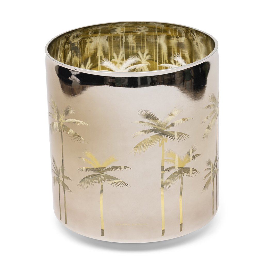 Sklenený svietnik RM Palm Groove L je veselý a živý svietnik na čajovú sviečku. Tento svietnik, vyrobený z ručne fúkaného skla, má na vonkajšej strane krásne vzory paliem spolu so zlatým vnútrom, ktoré po zapálení sviečky vytvárajú ohromujúci efekt. Na výber je niekoľko variantov.