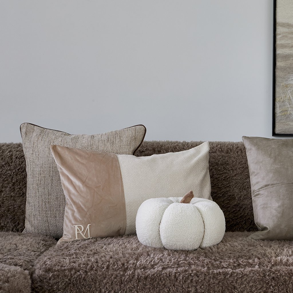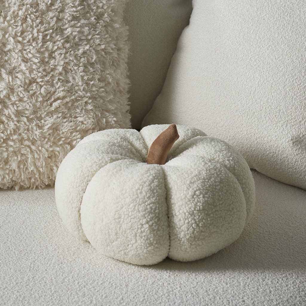 Štýlový dekoračný vankúš RM Pumpkin v tvare tekvice okamžite vnesie do vášho domova útulnú jesennú atmosféru. Vankúš je pevne vypchatý a biela látka bouclé mu dodáva moderný nádych.