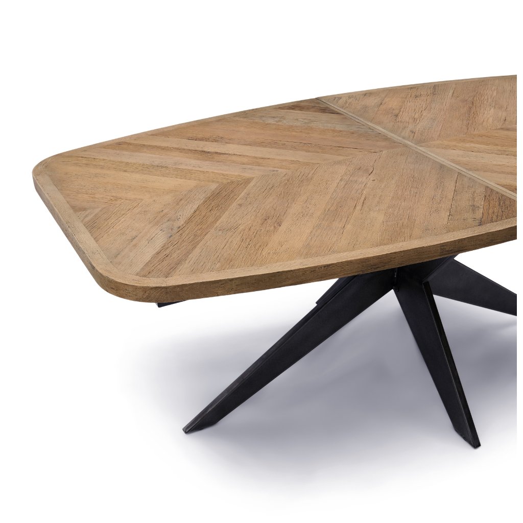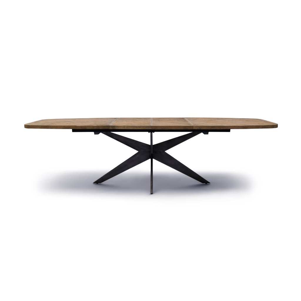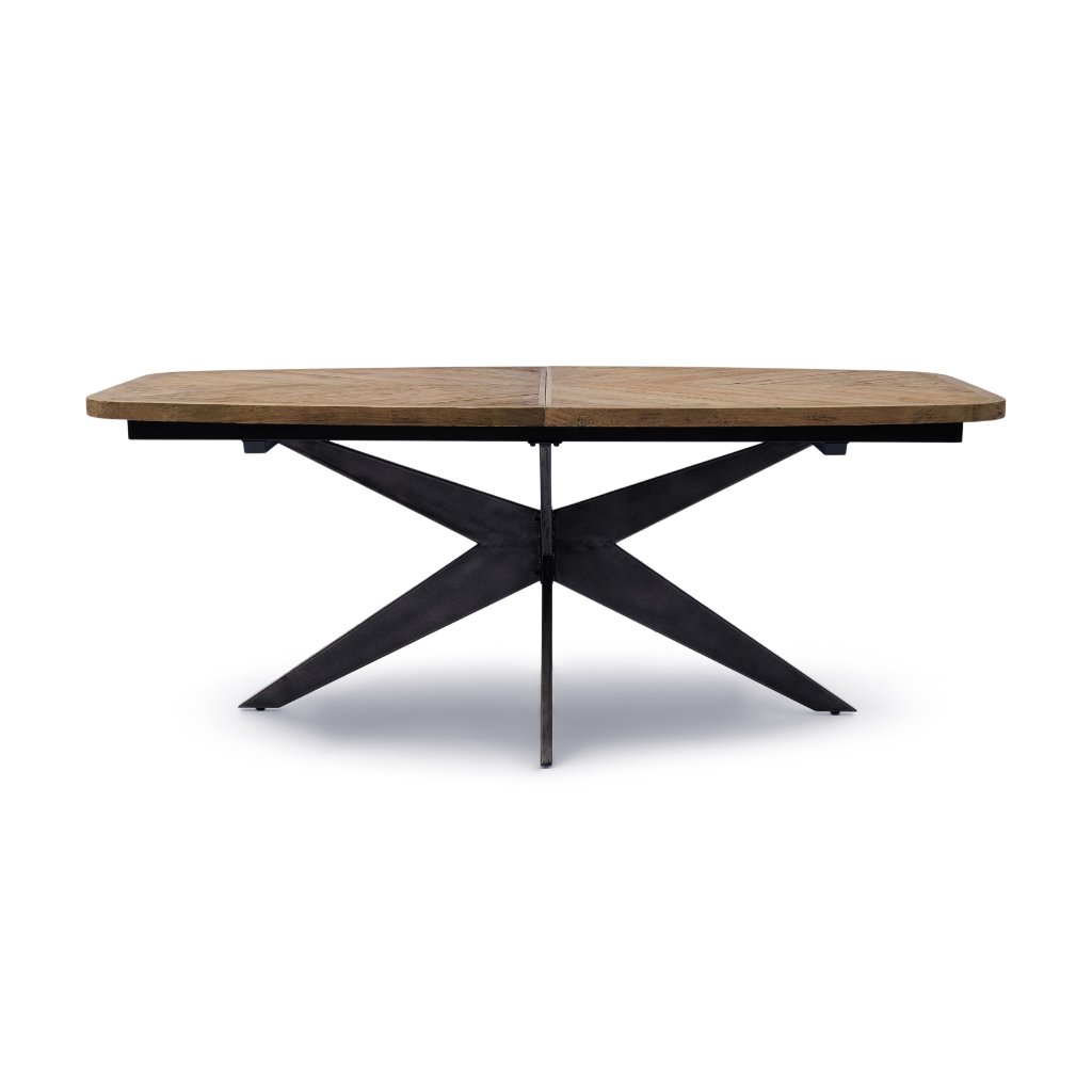 Falcon Crest je drevený jedálenský stôl na robustnej kovovej podnoži. Doska stola pozostáva z inkrustovaného 100 % recyklovaného jaseňového dreva. Farba aj štruktúra jednotlivých stolových dosiek sa líši podľa pôvodného zdroja dreva. Podstava v tvare písmena X dodáva stolom industriálny vzhľad a je veľmi praktická, pretože si za stôl môžete sadnúť takmer kdekoľvek. Kov je matne čierny. Falcon Crest je k dispozícii aj v okrúhlom alebo oválnom vyhotovení.
